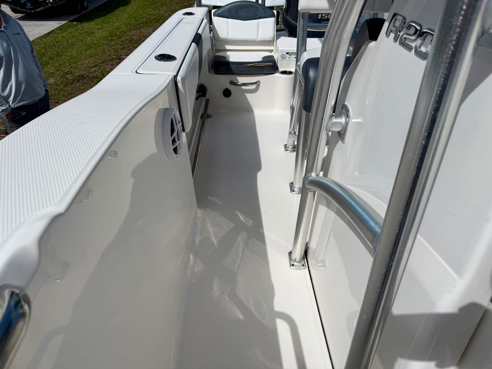 The 2021 Robalo R200 center console is packed with features that enhance your time on the water. Its spacious deck layout provides plenty of room for casting lines, moving about, or simply lounging in the sun. The center console configuration allows for 360-degree access around the boat, making it ideal for fishing and socializing. The helm is designed with ergonomics in mind, offering easy access to controls and clear sightlines for safe navigation.This Robalo boat for sale is equipped with a range of features that cater to both anglers and families. The sturdy construction and quality materials ensure durability and longevity, while the practical design elements make every outing enjoyable. The R200’s storage compartments are thoughtfully placed to keep your gear organized and out of the way, maximizing usable space on deck.