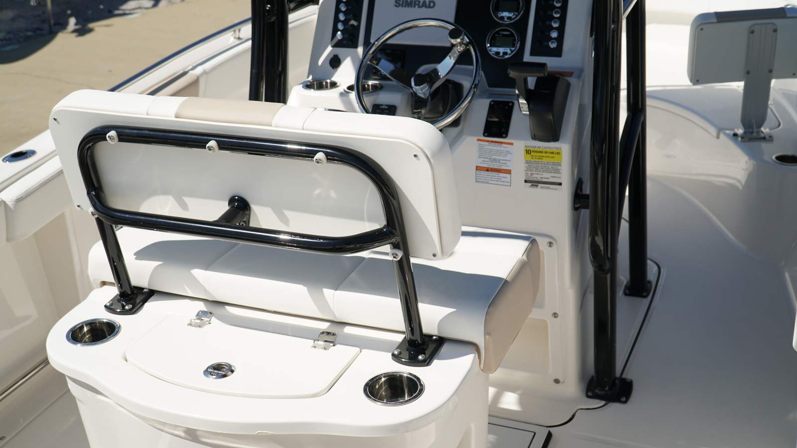 The Robalo 222 CC is loaded with special features designed to enhance your time on the water. The removable bow seating backrest provides flexible seating arrangements, allowing you to switch between lounging and open deck space as needed. The fiberglass leaning post, complete with a livewell and backrest, is finished in a stylish black powder coat, combining functionality with modern aesthetics. The black canvas T-top offers shade and protection from the elements, while the standard canvas and sand-colored cockpit interior create a welcoming and comfortable environment.A fresh water shower adds convenience for rinsing off after a swim or cleaning up after a day of fishing. The Seadek helm mat delivers superior comfort and traction at the helm, ensuring a pleasant experience during long days on the water. The boat’s solid hull, crafted with an Alloy Gray gel coat, not only looks stunning but also provides lasting durability. To top it off, the Robalo 222 CC comes with a 5-year premium level limited component warranty, giving you peace of mind and confidence in your investment.