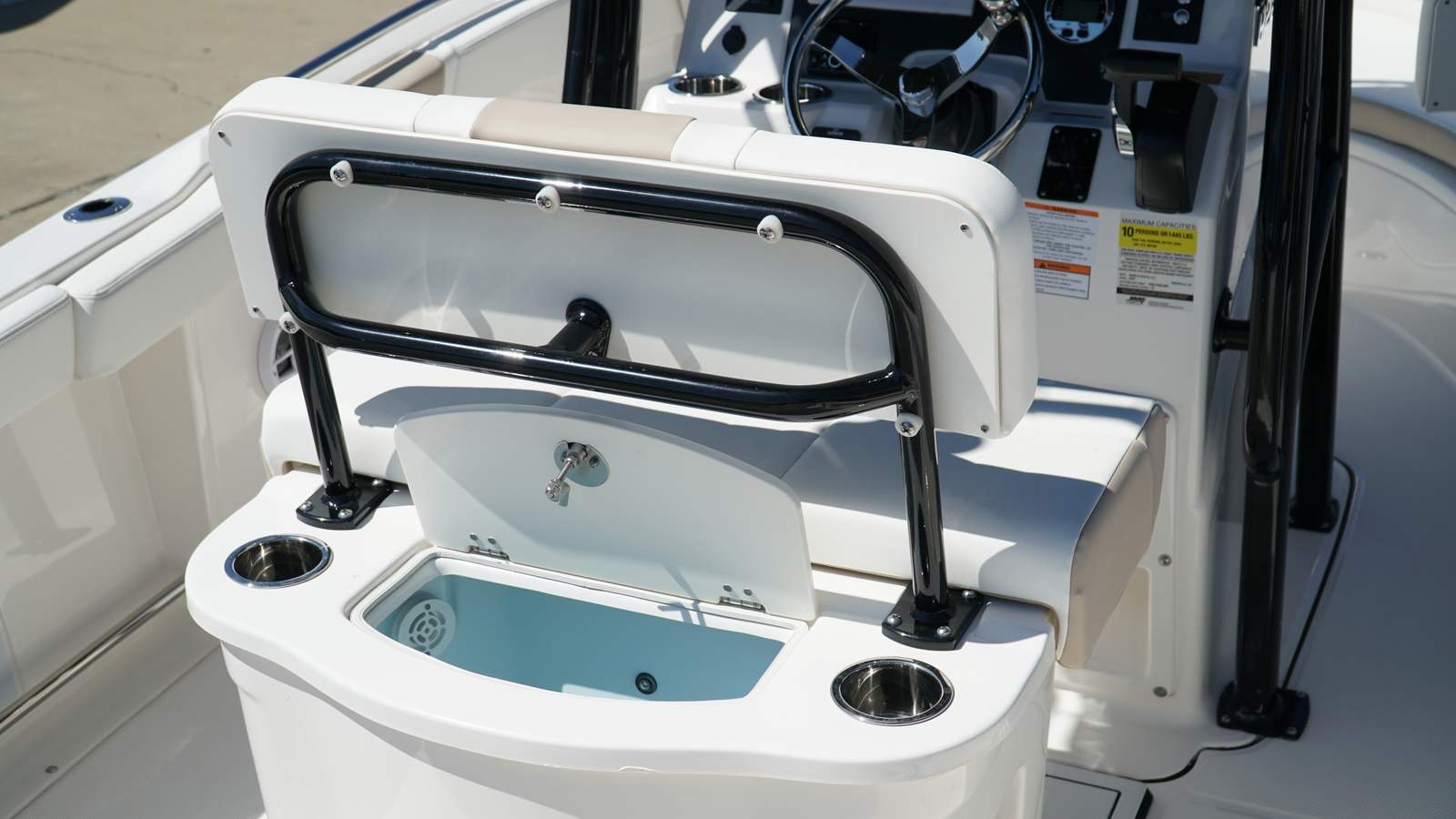 - Fiberglass Leaning Post with Livewell and Backrest - Black Powder Coated