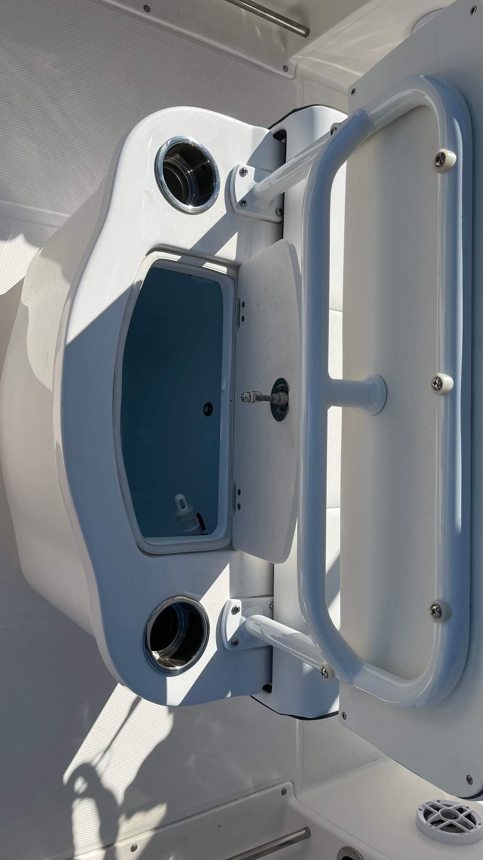 Powering the Robalo 222 CC is a single, pre-rigged Yamaha mechanical engine boasting 200 horsepower. This setup ensures smooth acceleration, responsive handling, and reliable performance in various conditions. The engine’s efficiency makes it easy to navigate coastal waters, lakes, and rivers, while the trim tabs with indicators allow for precise adjustments to optimize your ride. Whether you’re chasing the horizon or maneuvering through tight spaces, the Robalo 222 CC delivers the power and agility you need for an exhilarating boating experience.