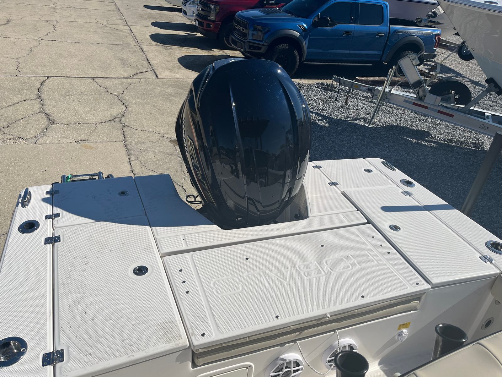Powering the Robalo 226 Cayman is a robust Yamaha VF200XB engine, delivering an impressive 200 horsepower. This single-engine setup is engineered for responsive handling and exhilarating speed, ensuring that every trip is as thrilling as it is smooth. Whether you’re cruising along the coastline, navigating shallow bays, or making a quick run to your favorite fishing spot, the 226 Cayman’s performance will inspire confidence. The integrated trim tabs with indicators allow for precise control and optimal ride quality, even in changing water conditions.