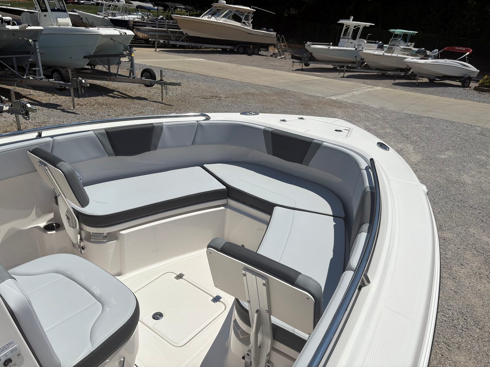 Owning the Robalo 230 CC means embracing a lifestyle of fun, relaxation, and adventure. The spacious Center Console layout encourages socializing, with plenty of room for friends and family to gather and enjoy the ride. The removable bow seating backrest allows you to easily transition between fishing and lounging, making the boat adaptable to your needs. The advanced navigation system and trim tabs ensure a smooth, enjoyable ride, while the stylish Biscayne Blue accents add a touch of luxury to every outing.This Center Console boat for sale is designed for maximum enjoyment, whether you’re casting lines, soaking up the sun, or sharing a meal on the water. The hard top provides shelter from the sun, allowing you to stay comfortable during long days on the water, while the pre-wiring for a trolling motor opens up new possibilities for fishing enthusiasts. With its new condition and cutting-edge features, the Robalo 230 CC is ready to deliver countless memories and adventures.