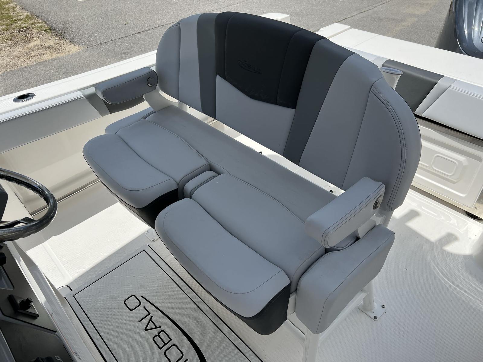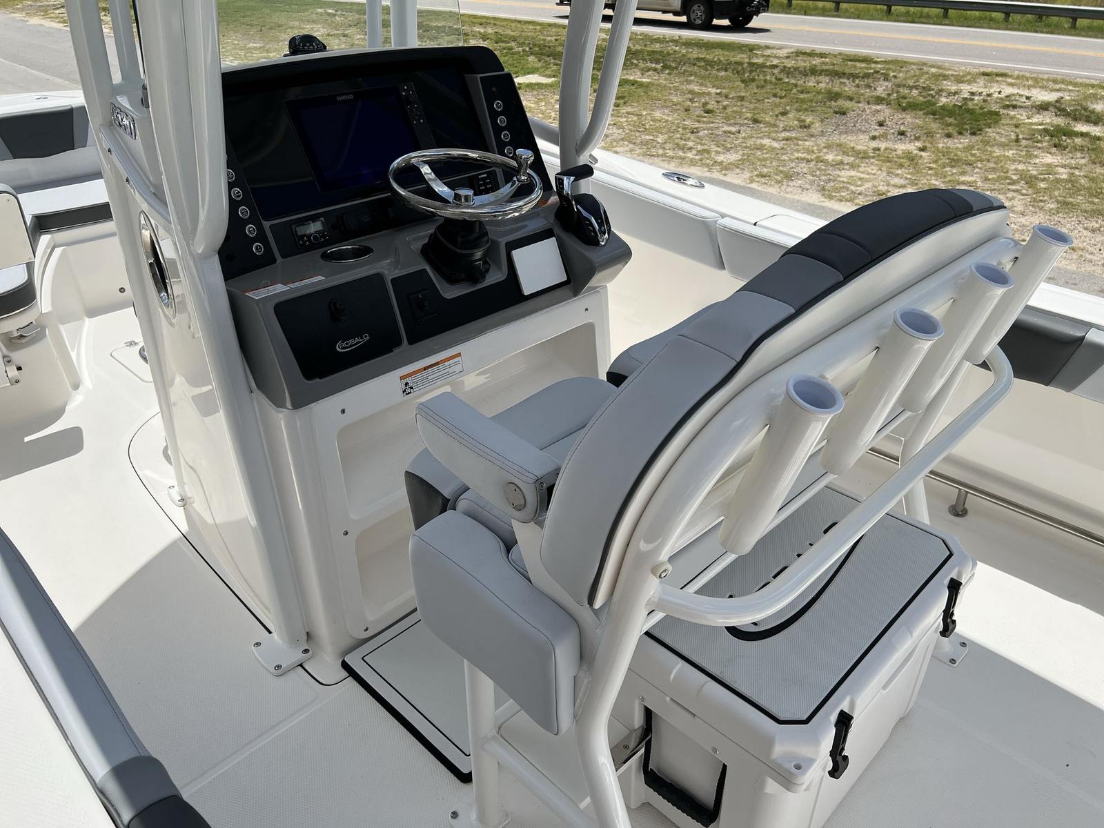 The Robalo 230 CC is packed with premium features that enhance both its functionality and aesthetic appeal. The Solid Hull Alloy Gray Gel Coat not only offers a striking look but also ensures long-lasting durability and resistance to the elements. Step aboard and you’ll notice the inviting Cockpit Interior in Harbor Mist, creating a relaxing and stylish environment for you and your guests.The boat’s Canvas Color and Canvas Accessories Color are both finished in classic black, adding a sophisticated touch to the overall design. The Standard Hard Top, complete with a white powder-coated finish, provides essential shade and protection from the sun, while the Hardtop Underside Gel Color in Alloy Gray ties the look together seamlessly.For navigation and control, the Simrad NSS12 EVO3S offers advanced chart plotting and fish-finding capabilities, making every trip safer and more enjoyable. Trim Tabs with Indicators allow for precise adjustments to your ride, ensuring optimal performance in changing water conditions. The Seadek Helm Mat in white adds comfort and style at the helm, while the Leaning Post with Backrest and four rod holders cater to both comfort and serious angling.Dual Flip Up Bolsters provide flexible seating options, and the Cooler and Arm Rest in white powder finish deliver convenience and luxury for long days on the water. Every detail of the Robalo 230 CC is designed to maximize your boating experience, whether you’re fishing, cruising, or simply relaxing.