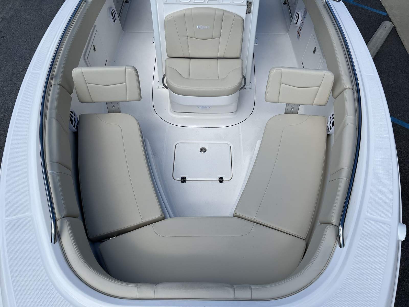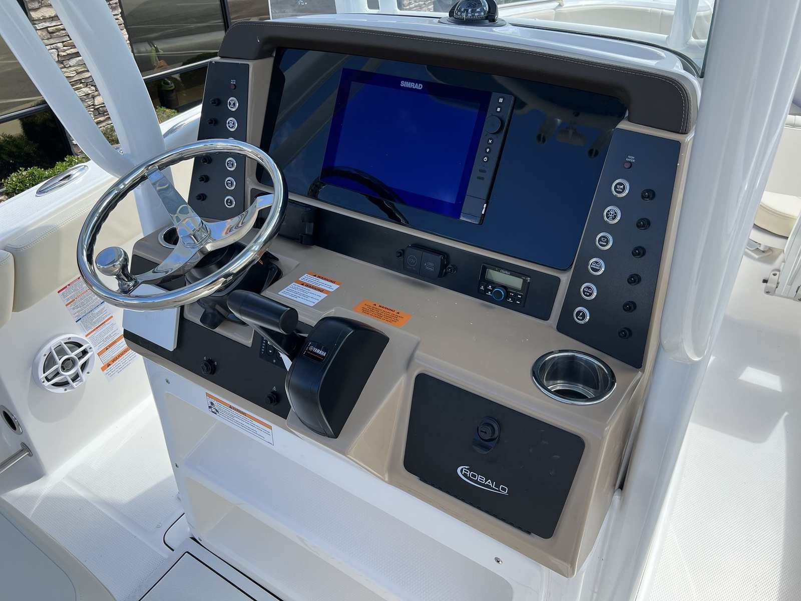 The Robalo 232 EX is designed with practicality in mind, making ownership as enjoyable as it is exciting. Its 23-foot length strikes the perfect balance between spaciousness and maneuverability, making docking and storage straightforward, even for those with limited experience. The efficient Yamaha VF250XB engine helps keep fuel costs manageable, allowing for longer trips and more time spent enjoying the water.The hardtop provides essential protection from the elements, while the covers for the leaning post and console help maintain the boat’s pristine appearance. The Simrad NSS4/12 system simplifies navigation and system management, reducing stress and enhancing safety. Trim tabs with indicators offer precise control, ensuring a smooth and stable ride in various conditions.