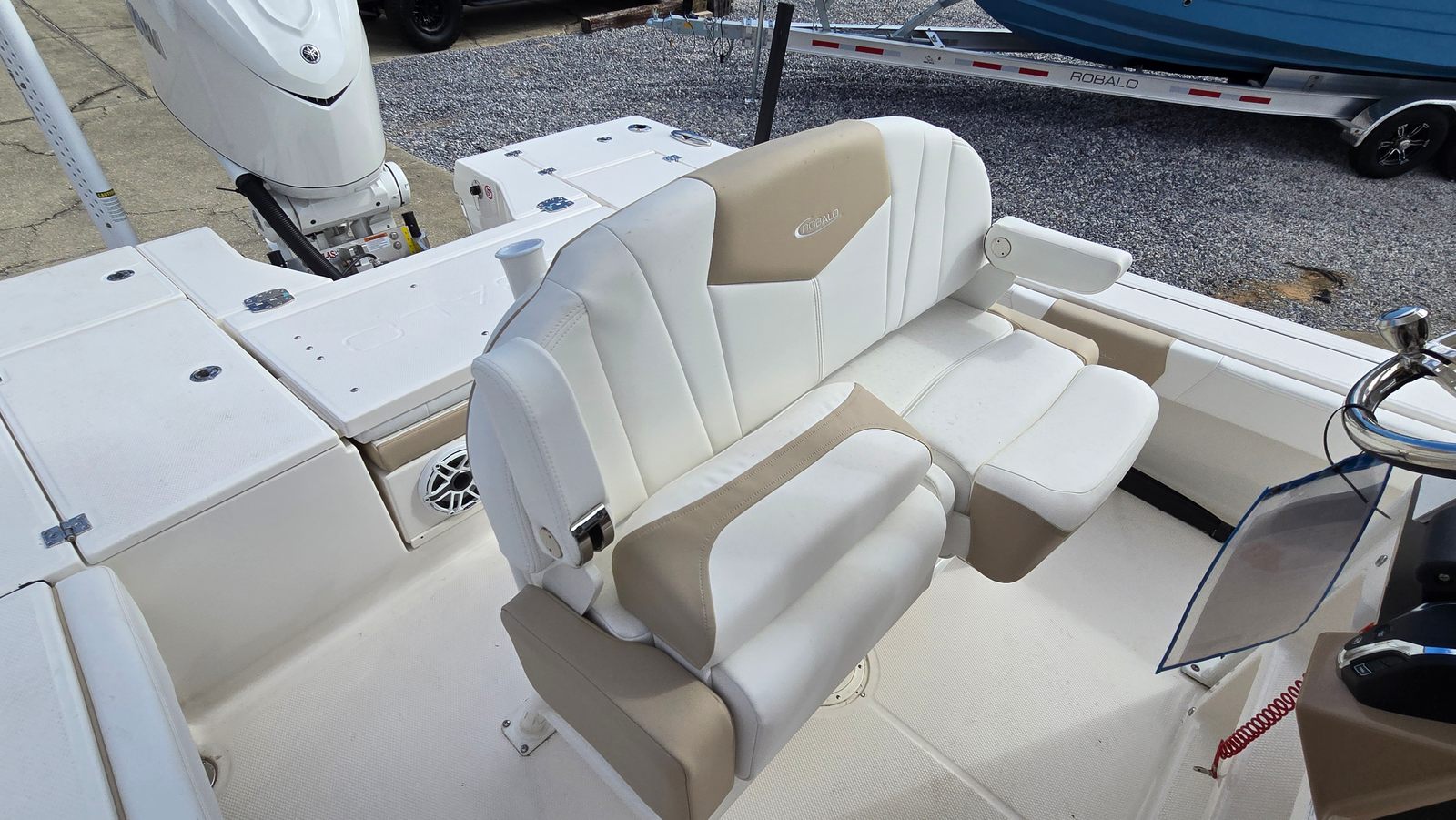 At the heart of this Robalo boat for sale is the powerful Yamaha F350XSA2 engine, finished in white and equipped with Digital Electric Steering. With an impressive 350 horsepower, this single-engine setup delivers robust acceleration, smooth handling, and reliable efficiency. The advanced steering system enhances maneuverability, allowing you to navigate tight bays, shallow waters, and open stretches with confidence and precision. Whether you’re chasing trophy fish or cruising with friends, the Robalo 246 Cayman SD’s performance capabilities ensure a responsive and exhilarating ride every time you hit the water.