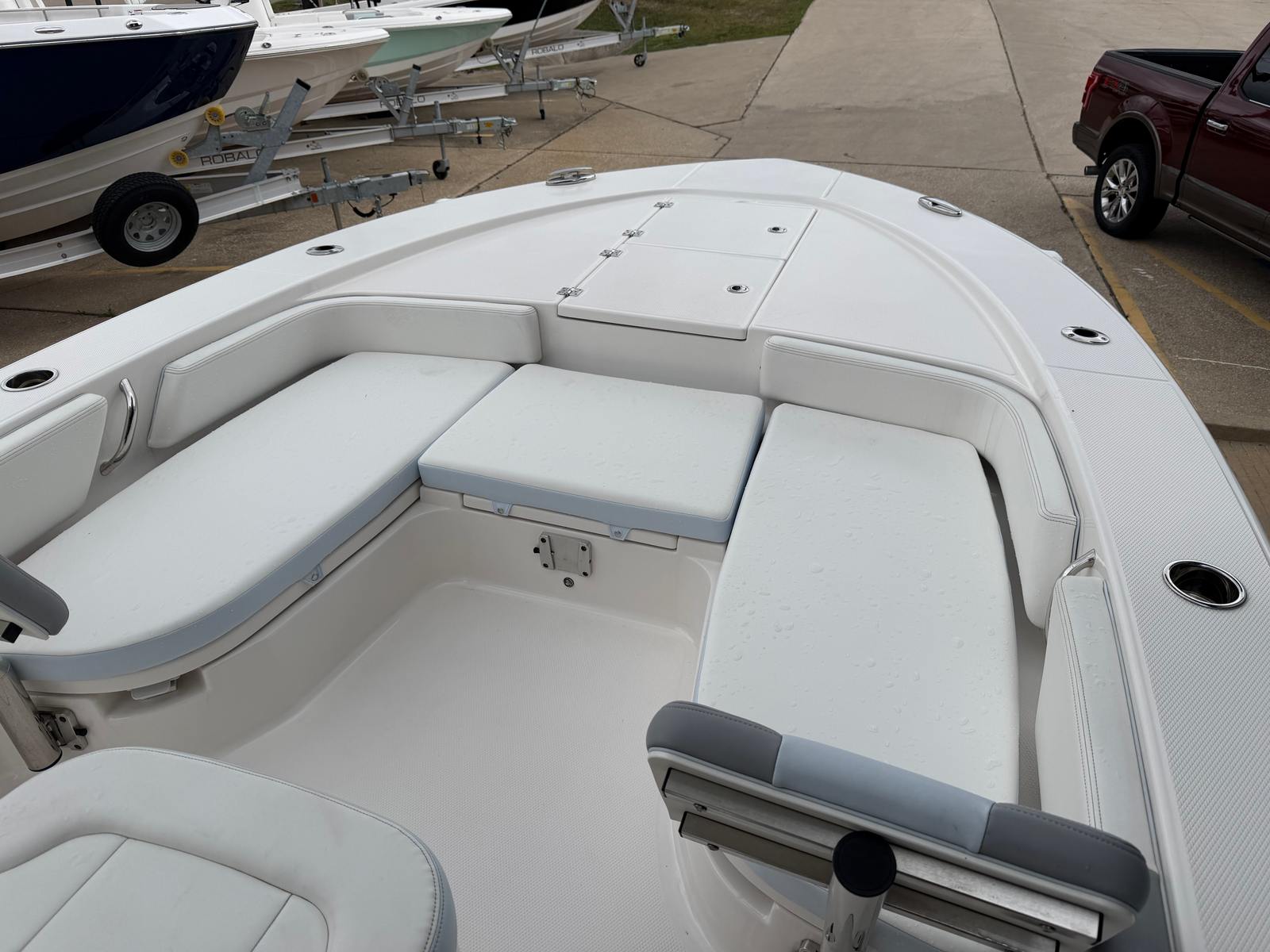 The Robalo 246 Cayman is as practical as it is stylish. Its 24.5-foot length strikes the perfect balance between ample space and easy handling, making it ideal for both seasoned boaters and newcomers alike. The boat's efficient hull design and powerful engine contribute to excellent fuel economy, so you can spend more time on the water and less time at the fuel dock.Docking and maneuvering are a breeze thanks to the responsive digital steering and trim tabs, while the durable gelcoat finish ensures your investment stays looking great season after season. The inclusion of a porta pottie adds convenience for longer trips, and the Seadek helm mat keeps the captain comfortable during extended outings. With plenty of room for gear and guests, this bay boat is ready for any adventure you have in mind.