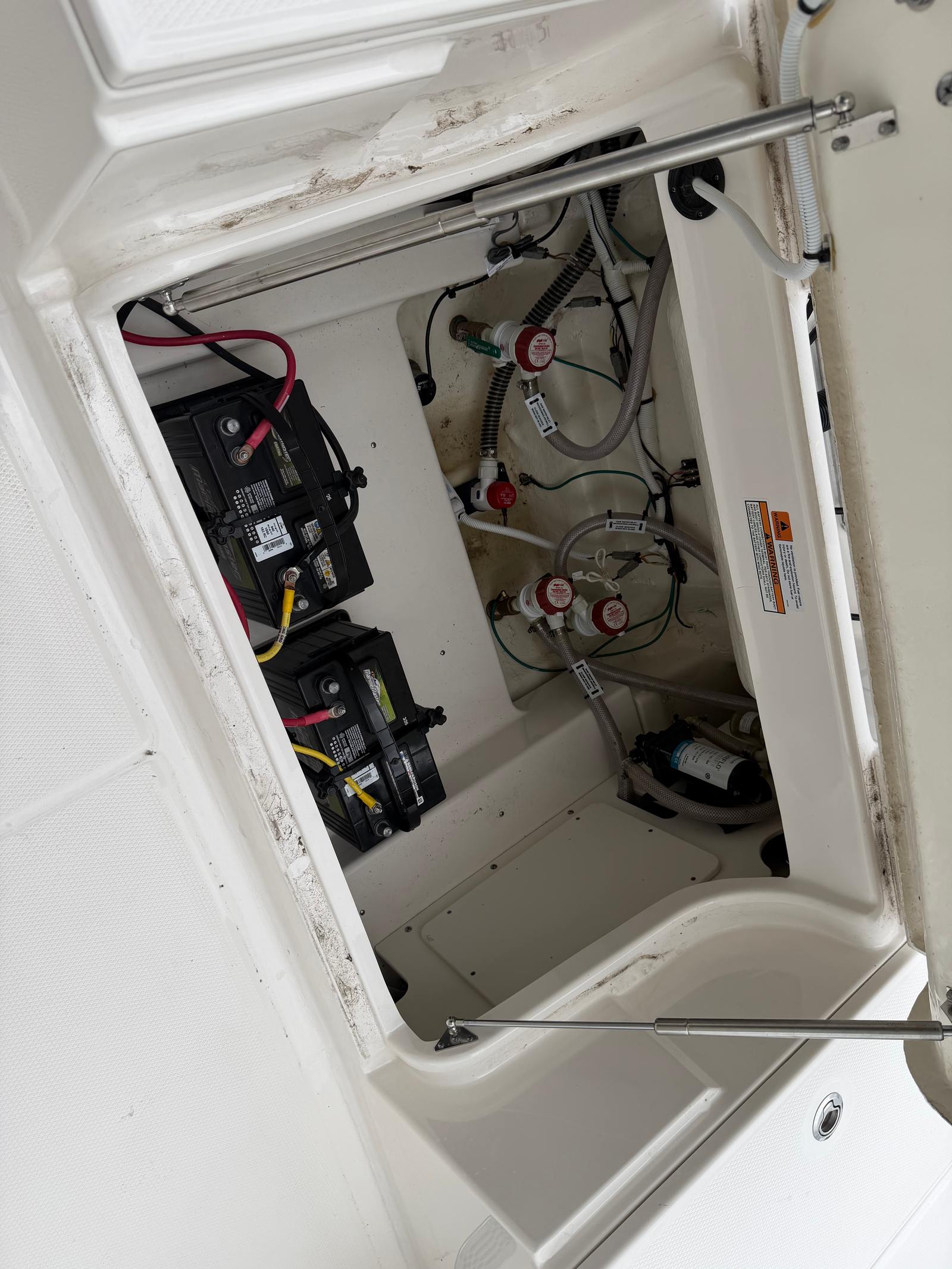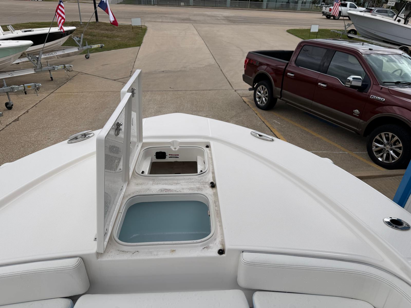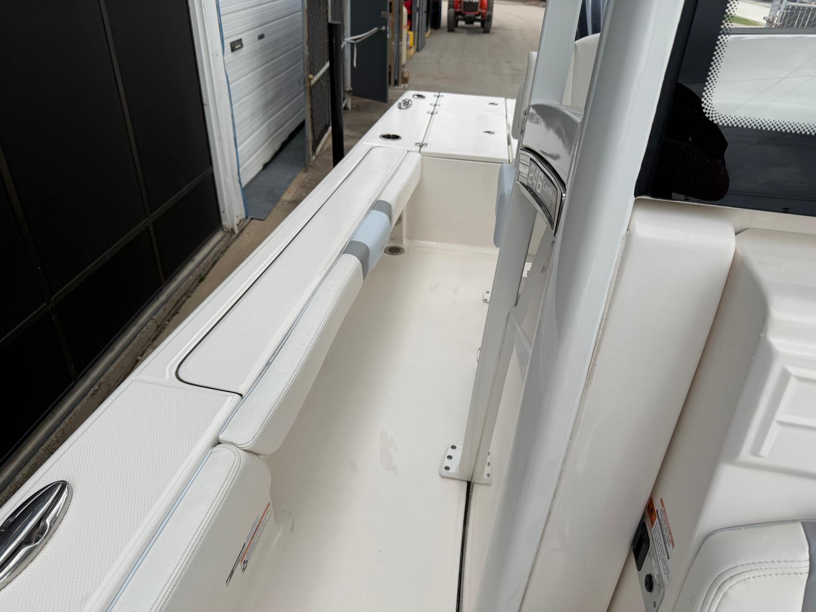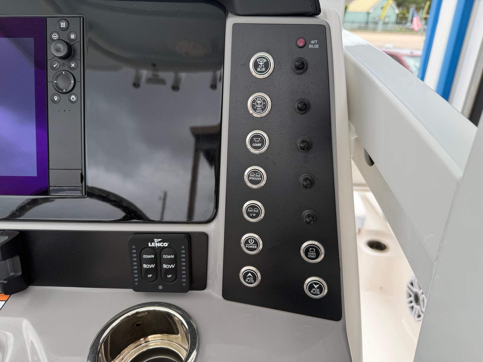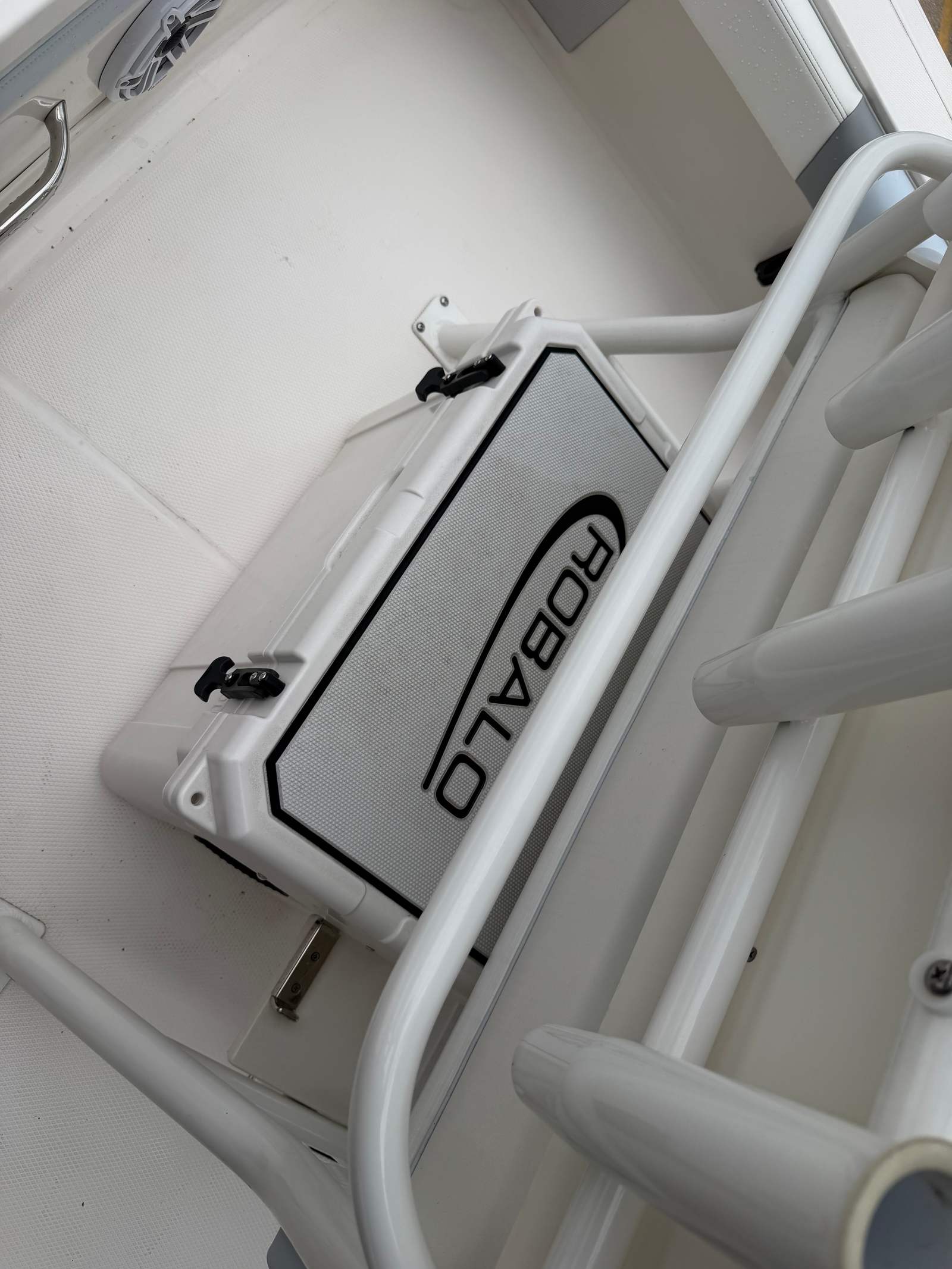 The Robalo 246 Cayman is packed with premium features that enhance both functionality and comfort. The solid hull gelcoat in Ice Blue not only adds a touch of elegance but also provides durability and protection against the elements. The cockpit interior, finished in Harbor Ice Blue, creates a cool and inviting atmosphere for all your guests.A standard hard top, powder coated in white, offers shade and protection from the sun, making long days on the water more enjoyable. The Simrad NSS12 EVO3S multifunction display puts navigation and fish-finding technology at your fingertips, ensuring you stay on course and in control. For those who appreciate high-quality sound, the JL Audio Sound System Upgrade delivers crystal-clear music, setting the perfect mood for any outing.Trim tabs with indicators allow for easy adjustment of the boat's attitude, improving stability and ride comfort in varying conditions. Dual color LED underwater lights (two on each side) add a dramatic flair for evening cruises and make nighttime activities safer and more enjoyable. The Seadek helm mat provides cushioned support for the captain, reducing fatigue during long days at the helm. For added convenience, a porta pottie is included, ensuring comfort during extended trips.