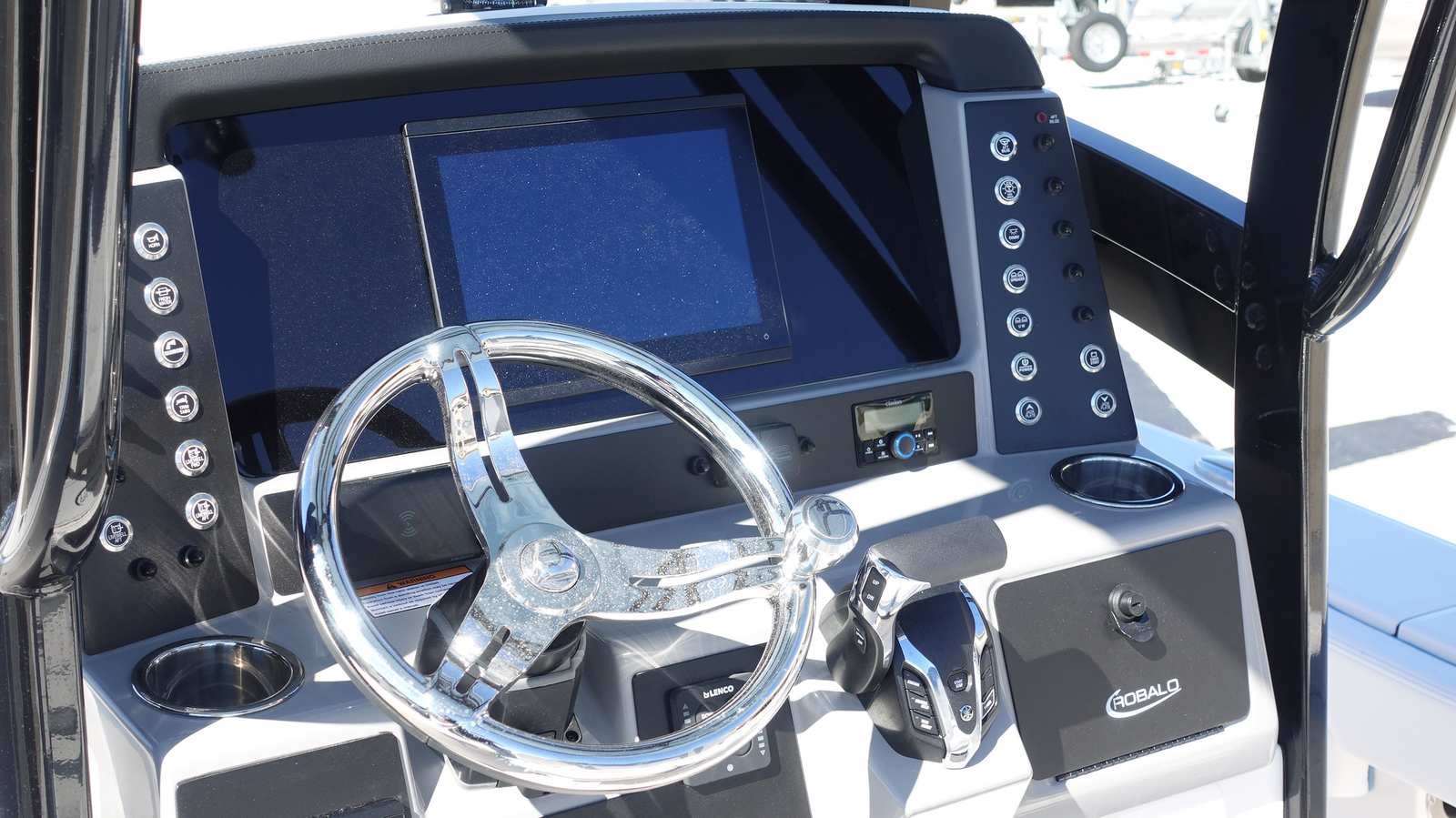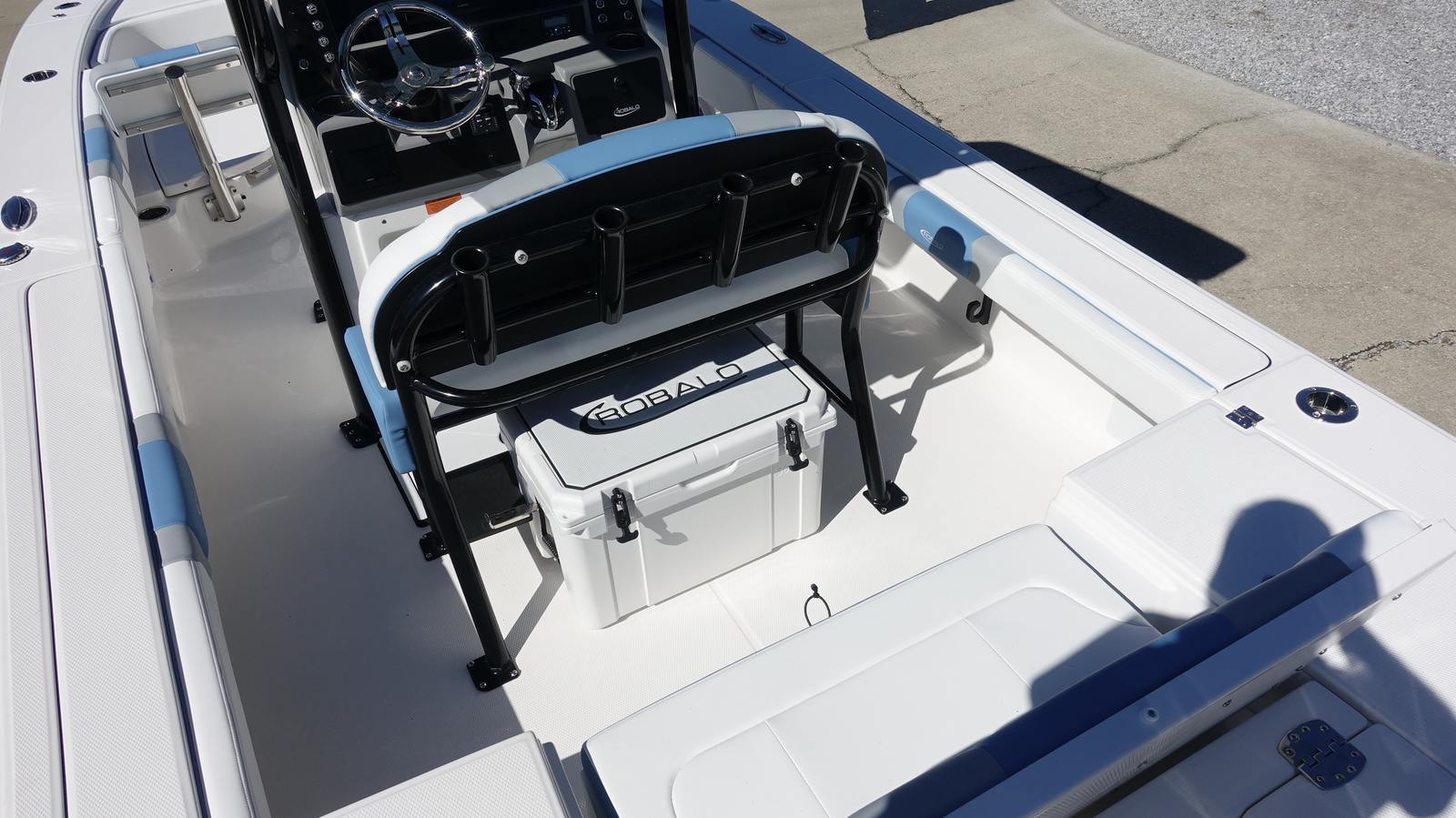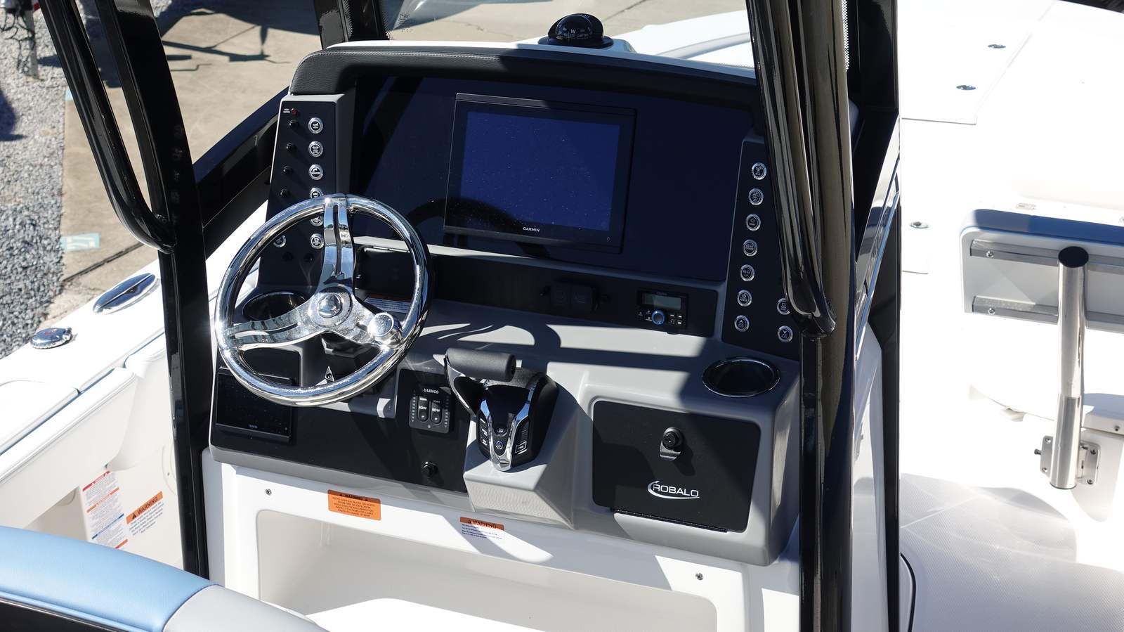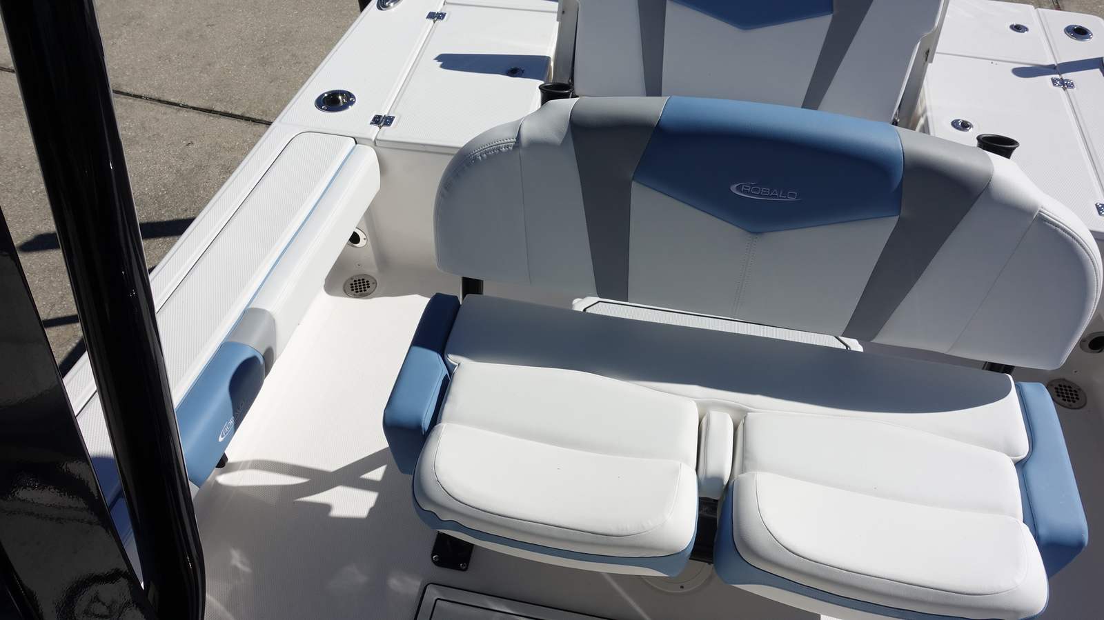 The Robalo 246 Cayman Bay Boat is packed with premium features designed to enhance your time on the water. The hard top, complete with black powder coating, provides shade and protection from the elements, while the Atlas Blue gel color on the underside adds a custom touch. The forward canvas fly in black canvas offers additional shelter, making it easy to enjoy your boat in any weather.Navigation is a breeze with the Garmin GPSMap 1243XSV, a state-of-the-art system that ensures you stay on course and find the best fishing spots with ease. Trim tabs with indicators allow you to adjust the boat’s attitude for optimal performance and comfort, while dual color LED underwater lights (two on each side) create a vibrant ambiance for evening cruises or night fishing excursions.The stainless steel steering wheel, featuring a soft grip and control knob, provides a comfortable and secure hold, enhancing your overall boating experience. Every detail, from the hull design to the cockpit layout, is engineered for maximum enjoyment and convenience.