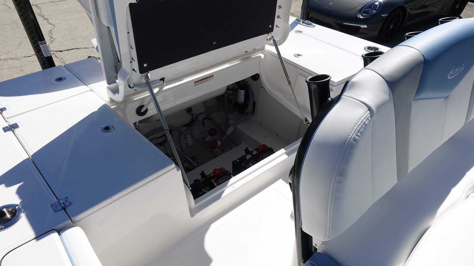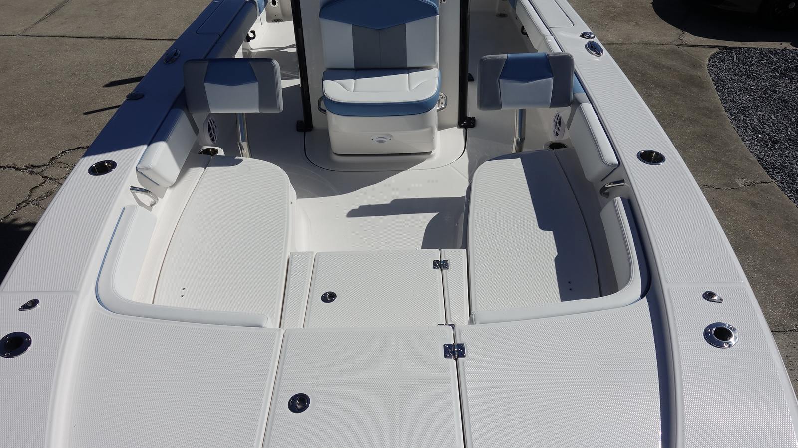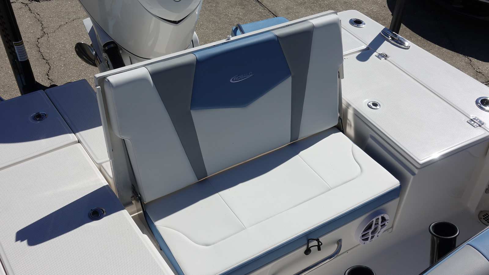 Powering the Robalo 246 Cayman is a single Yamaha F350XSA2 engine, finished in white and equipped with Digital Electric Steering. Boasting an impressive 350 horsepower, this engine ensures smooth, responsive handling and exhilarating acceleration. Whether you’re navigating shallow bays or heading out for a day of offshore fishing, the Yamaha F350XSA2 delivers reliable performance and efficiency. The advanced steering system allows for precise control, making docking and maneuvering effortless, even in challenging conditions.
