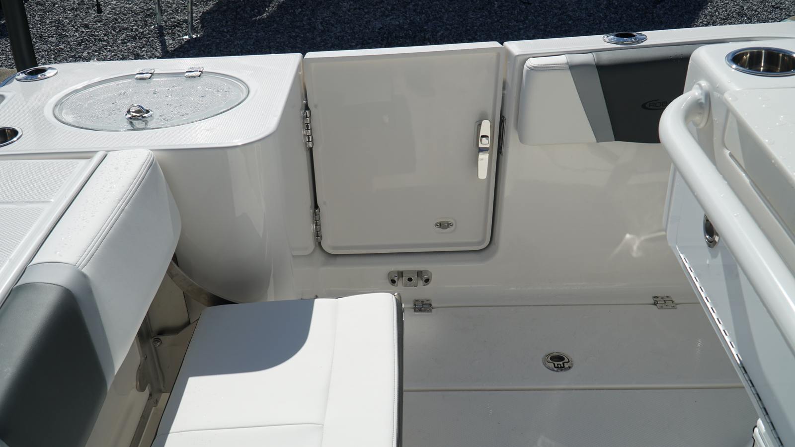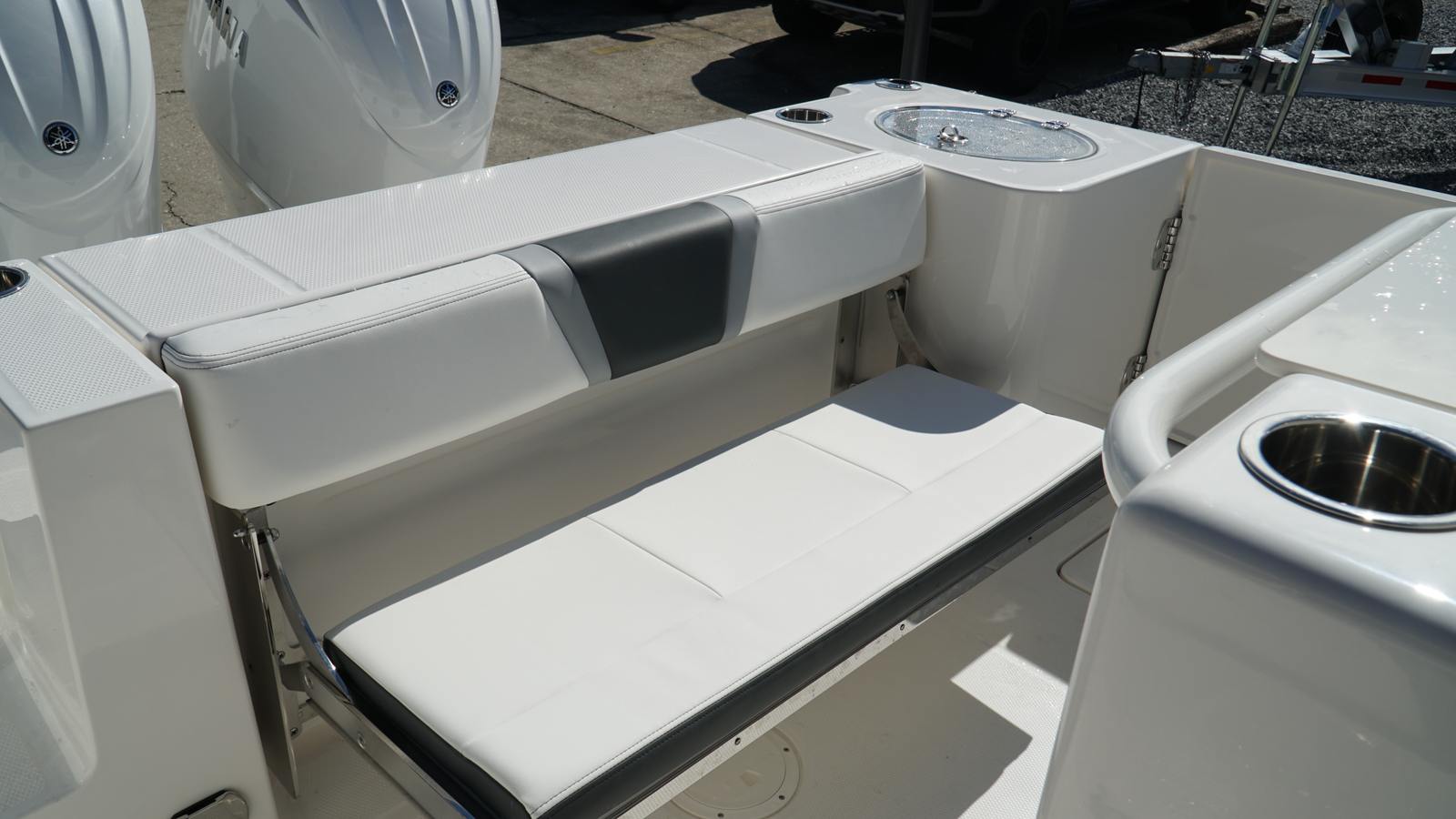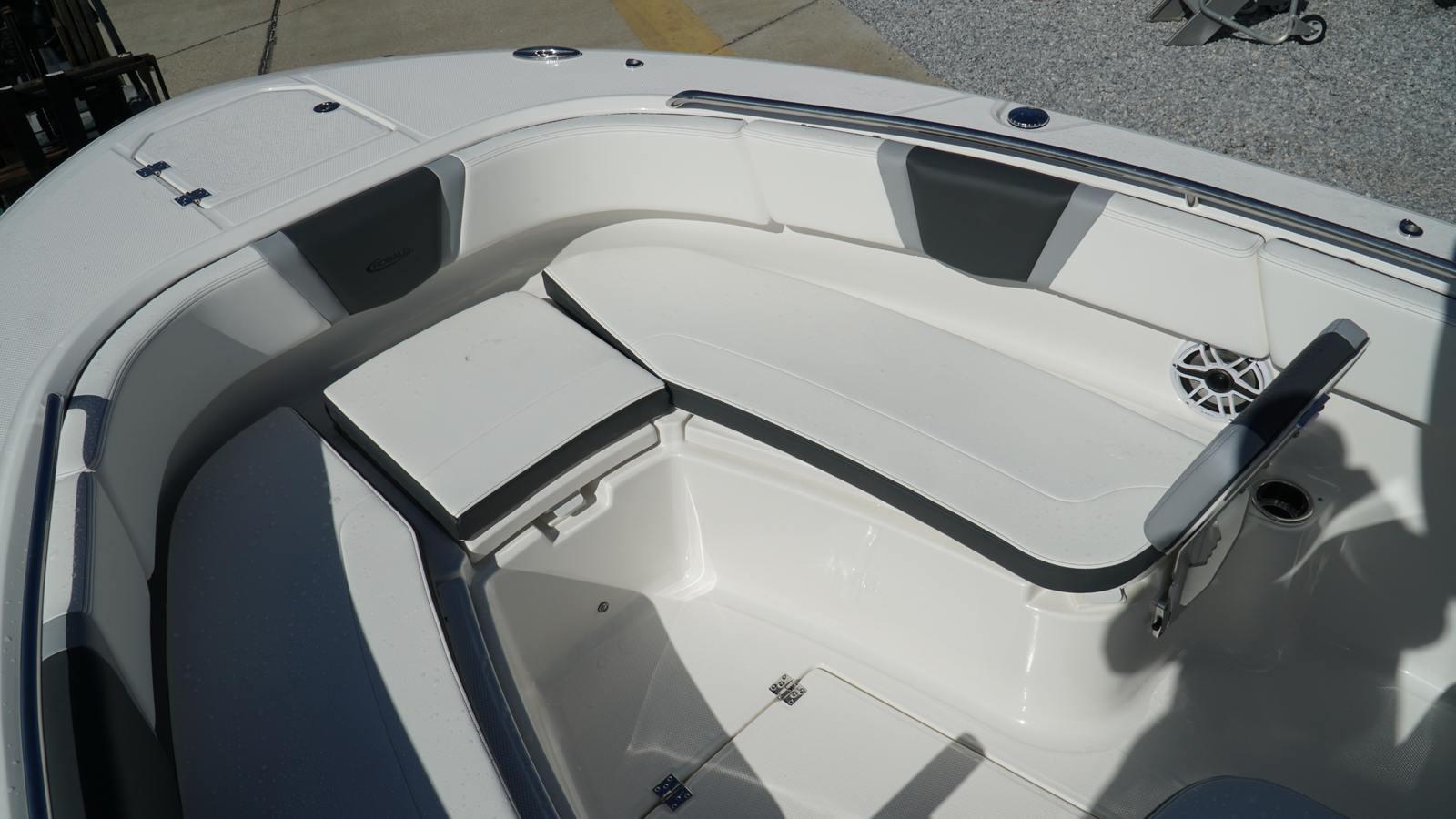 The Robalo 250 CC is designed with practicality in mind, offering features that make ownership and operation straightforward and enjoyable. The ample storage options ensure that all your gear, tackle, and personal items are easily accessible and securely stowed. The ease of docking and trailering, thanks to the aluminum tandem axle trailer and side guides, means you can spend less time worrying about logistics and more time enjoying the water.Fuel efficiency is enhanced by the boat’s advanced hull design and powerful yet economical engines, allowing you to explore further without frequent stops at the fuel dock. The gravity discharge porcelain toilet system adds a layer of convenience, especially during longer outings, while the pre-wiring for a trolling motor allows for easy upgrades to suit your fishing needs.