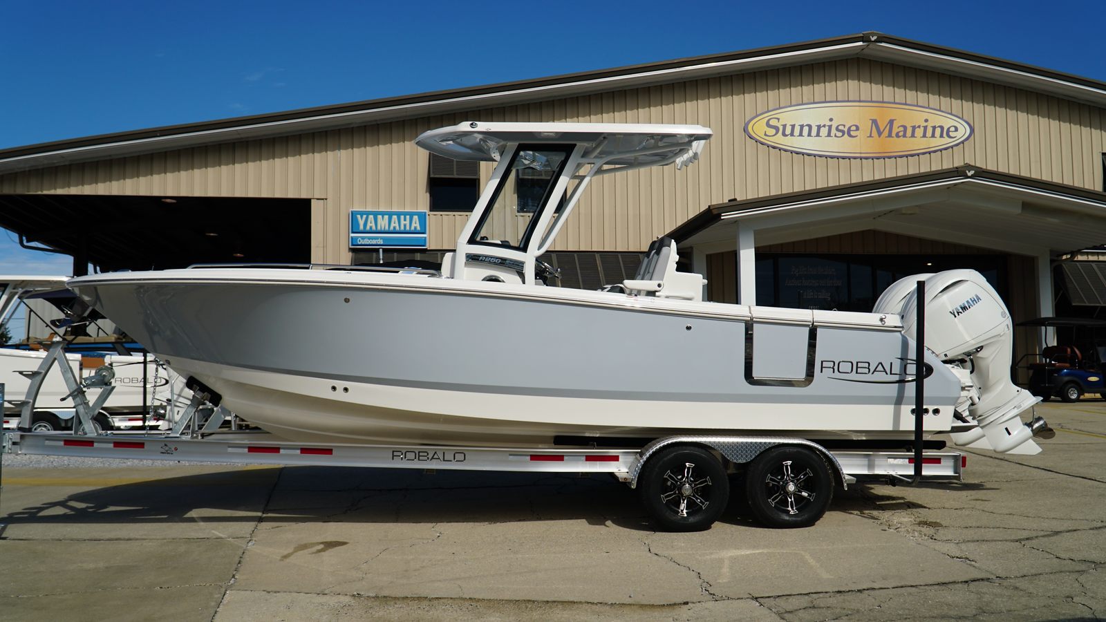 Power and reliability are at the heart of the 2025 Robalo 250 CC. Equipped with twin engines, each delivering 300 horsepower, this center console boat offers exceptional speed, acceleration, and maneuverability. The dual-engine setup ensures smooth handling and optimal performance, whether you are navigating choppy waters or gliding across calm bays. The advanced engineering behind the Robalo 250 CC provides the confidence and control you need for a wide range of on-water activities, making it a top choice for those seeking a high-performance Robalo boat for sale.