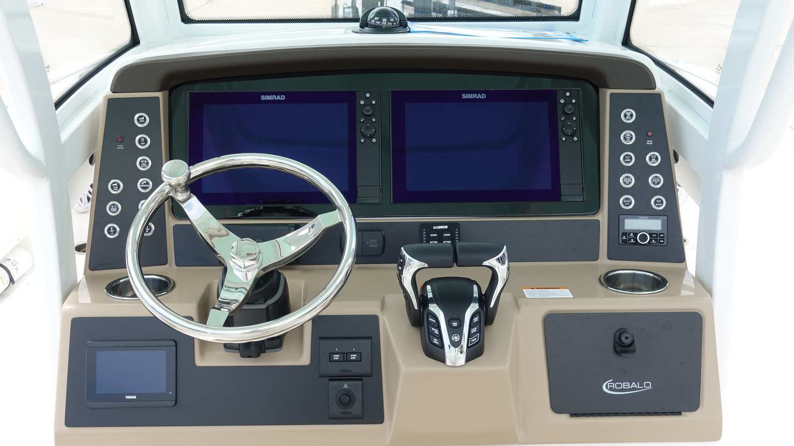 Power and precision define the Robalo 250 CC’s performance. Equipped with twin Yamaha F150XSA2 engines, each boasting 150 horsepower for a combined total of 300 horsepower, this center console boat delivers impressive speed, agility, and control. The engines feature electro hydraulic steering, ensuring smooth and responsive handling whether you’re cruising at high speeds or navigating tight marina spaces. The advanced twin-engine setup provides enhanced reliability and maneuverability, making it easy to tackle a variety of water conditions with confidence.