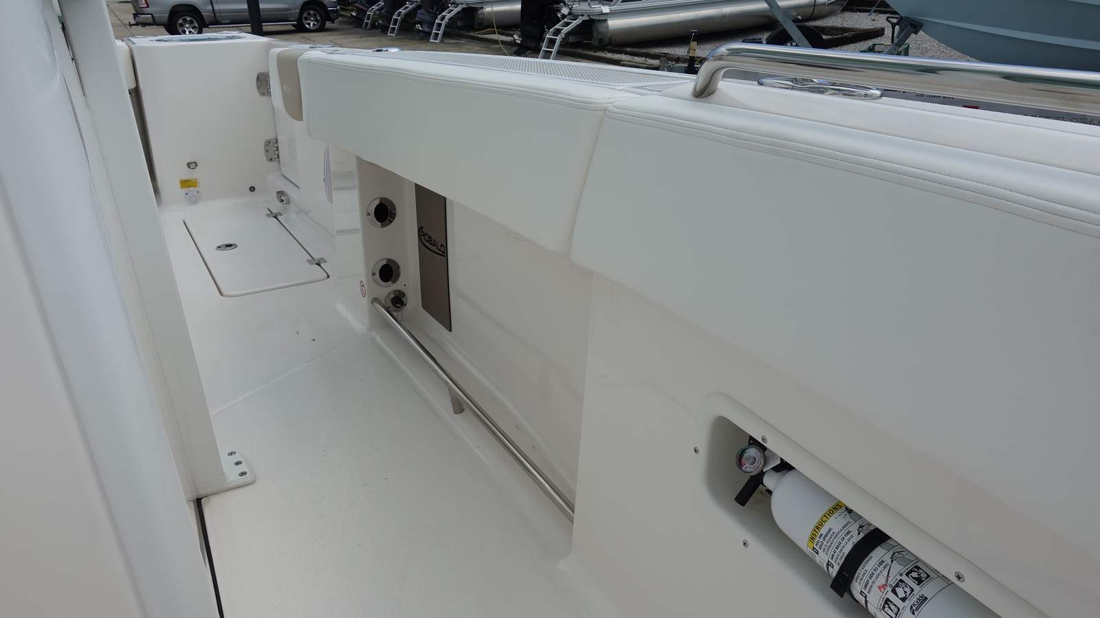 The Robalo 250 CC is packed with premium features that elevate your boating experience. The hull side gelcoat in Seafoam Green not only adds visual appeal but also offers durability and protection against the elements. The Sand cockpit interior provides a comfortable and stylish environment for passengers, while the standard hard top complete and leaning post (powder coated in white) offer shade and support during long days on the water. The hardtop underside gel color in Seafoam Green seamlessly matches the hull, creating a cohesive and modern look.Technology enthusiasts will appreciate the twin Simrad NSS12 EVO3S displays, which deliver advanced navigation, fish-finding, and system monitoring capabilities. The Simrad NMEA 2000 package with engine data and audio interface ensures seamless integration and real-time information, while the VHF radio keeps you connected for safety and communication. The Simrad SS175M transducer enhances sonar performance, making it easier to locate fish and underwater structures. For those who love music, the JL Audio sound system upgrade provides crystal-clear audio, transforming your boat into a floating entertainment hub.