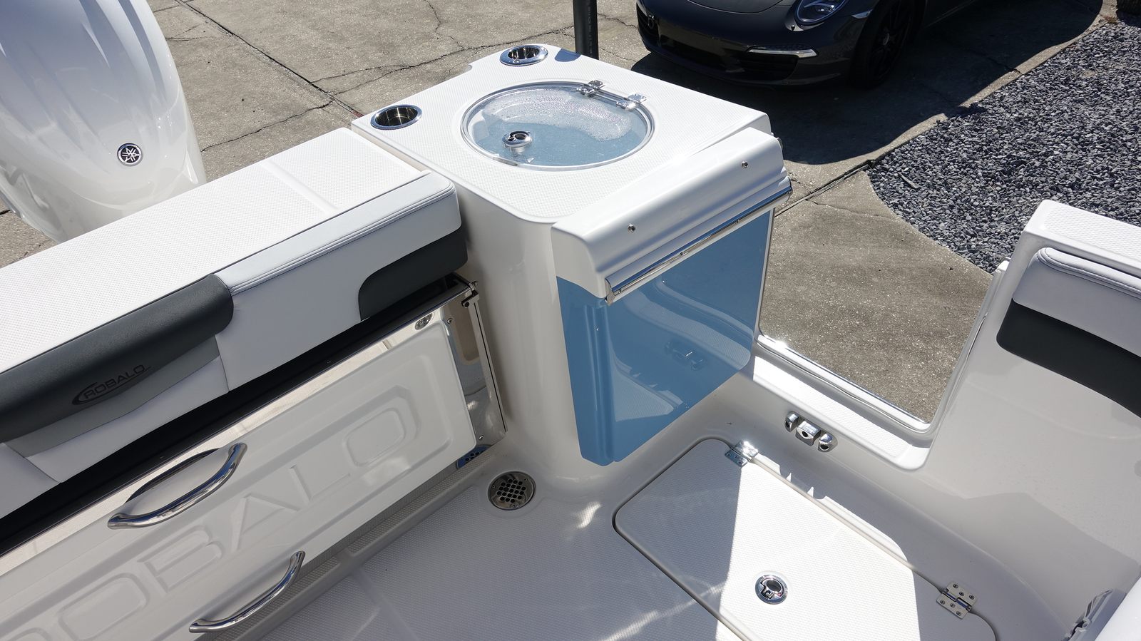 Power and precision define the performance of the Robalo 257 DC. Equipped with twin Yamaha F150XSA2 outboard engines, each delivering 150 horsepower, this boat boasts a combined 300 horsepower for exhilarating speed and responsive handling. The white engines are paired with electro-hydraulic steering, ensuring smooth maneuverability and effortless control, even in challenging conditions. Whether you are cruising along the coastline, towing water toys, or heading out for a day of fishing, the Robalo 257 DC offers the power and agility you need for any adventure.