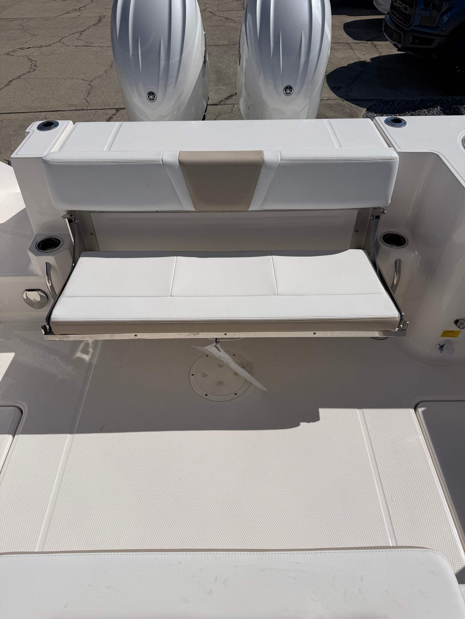 At the heart of the Robalo 270 CC are twin Yamaha F200XSA2 engines, each delivering 200 horsepower for a combined total of 400 horsepower. These powerful outboards are finished in white and equipped with electro hydraulic steering, providing smooth and responsive handling even in challenging conditions. Whether you’re navigating coastal waters or heading offshore, the Robalo 270 CC offers impressive acceleration, reliable cruising speeds, and exceptional maneuverability. The Yamaha engines are renowned for their efficiency and durability, ensuring that your boating adventures are both thrilling and worry-free.