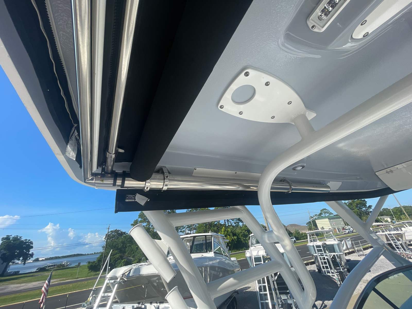 The Robalo 317 DC is loaded with premium features that elevate both comfort and functionality. The cockpit interior, finished in Harbor Mist, creates a welcoming and stylish environment for you and your guests. The black canvas color and matching canvas accessories add a touch of sophistication, while the hardtop enclosure provides protection from the elements, allowing you to enjoy your boat in any weather. The hardtop underside, finished in Alloy Gray gel color, complements the overall aesthetic and adds to the boat’s modern appeal.For those who love to relax in the sun or seek shade when needed, the retractable Sure Shade offers flexible coverage at the touch of a button. Dual color LED underwater lights not only enhance the boat’s appearance after dark but also create a captivating ambiance for evening cruises or dockside gatherings. Every detail of the Robalo 317 DC is thoughtfully designed to maximize your enjoyment and convenience on the water.