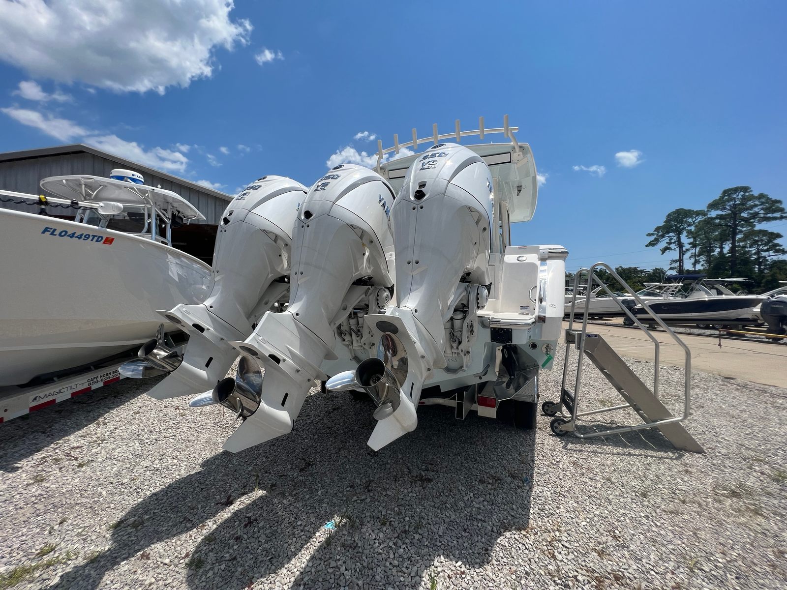 The Robalo 360 CC is as practical as it is luxurious. The integrated drawer storage helps keep your gear organized and easily accessible, reducing clutter and maximizing usable space. The boat’s size and design make docking and maneuvering straightforward, even in busy marinas or tight slips. The triple Yamaha engines not only provide impressive speed but also offer reliability and efficiency, making longer journeys more feasible and enjoyable.The protective covers for the console and helm seat help maintain the boat’s pristine condition, while the forward canvas fly offers essential shade during hot summer days. The Seadek helm mat adds comfort for the captain, especially during extended outings. With the boat being water ready, you can spend less time preparing and more time enjoying your favorite activities.