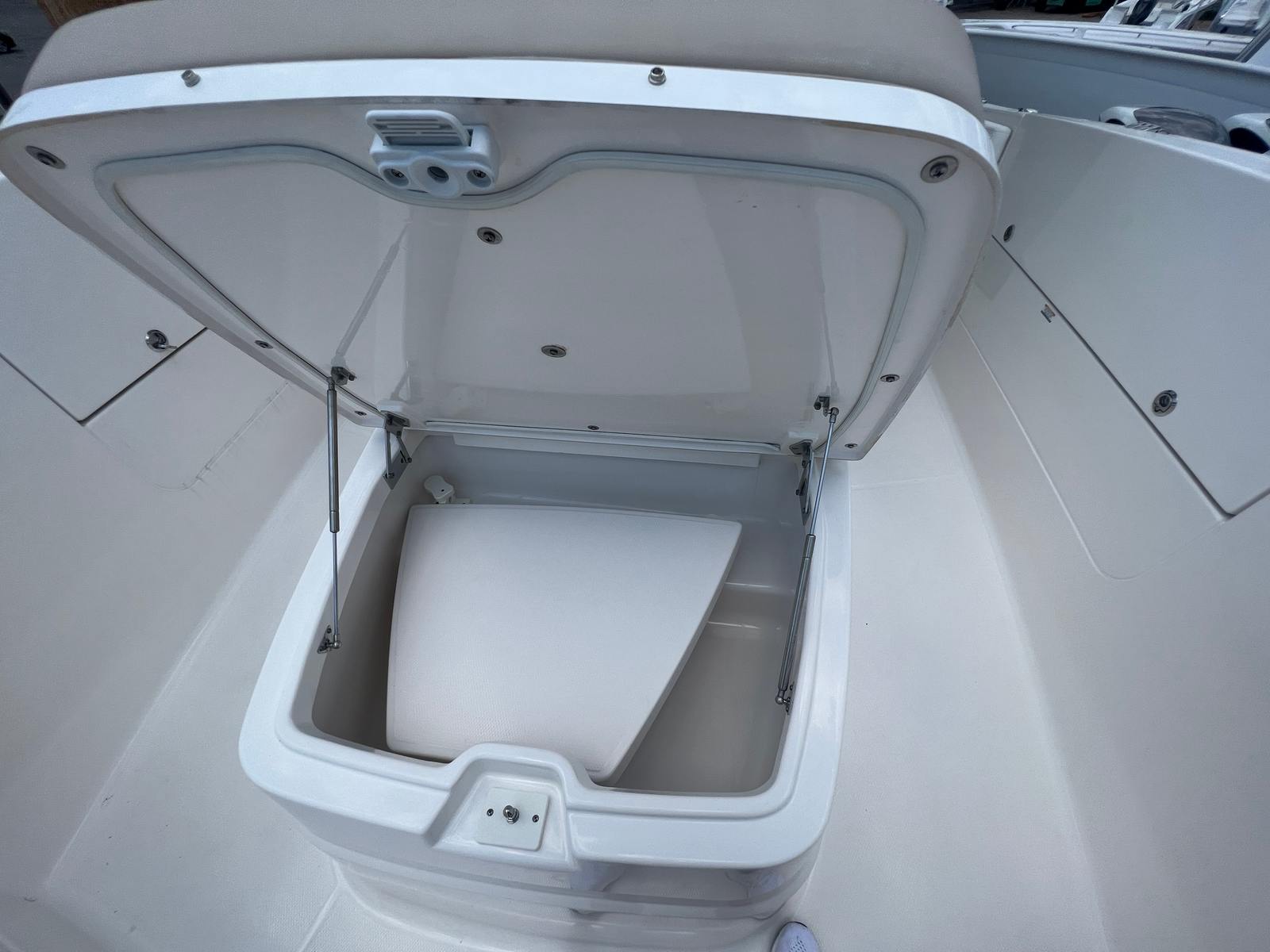 This Robalo boat for sale is loaded with premium features that enhance both functionality and comfort. The console cover and helm seat cover in sleek black provide protection and style, while the forward canvas fly in crisp white canvas offers shade and shelter for those sunny days on the water. The hardtop underside gel color in Ice Blue adds a touch of sophistication and modern flair to the boat’s overall look.Inside the cockpit, the sand-colored interior creates a warm and inviting atmosphere, complemented by the Seadek helm mat in Dune for added comfort underfoot. Drawer storage is thoughtfully integrated, offering convenient space to stow gear and essentials. The Simrad SS175 M transducer ensures you have advanced navigation and fish-finding capabilities at your fingertips, making this Center Console boat a top choice for anglers and explorers alike.With the boat being water ready, you can hit the waves as soon as you take delivery. The 5 Year Premier Level Limited Component Warranty provides peace of mind, reflecting Robalo’s commitment to quality and customer satisfaction.