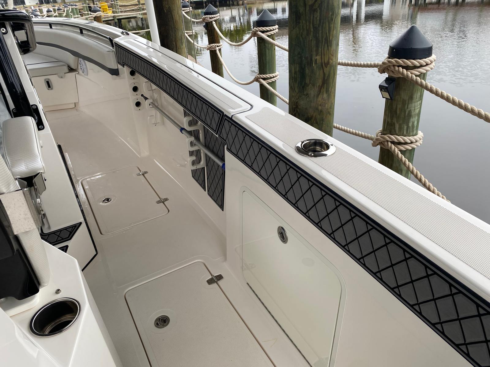 When it comes to performance, the Scarab 302 Fisherman truly shines. Equipped with twin engines delivering a combined 700 horsepower, this Center Console boat is built for speed and agility. The engines have only 350 hours, indicating plenty of life left for years of reliable operation. Whether you’re navigating coastal waters, heading offshore, or simply enjoying a day on the lake, the Scarab 302 Fisherman offers impressive acceleration and handling. The dual-engine setup ensures smooth cruising and enhanced maneuverability, making docking and tight turns effortless. For those who crave excitement and power on the water, this Scarab boat for sale is sure to deliver.