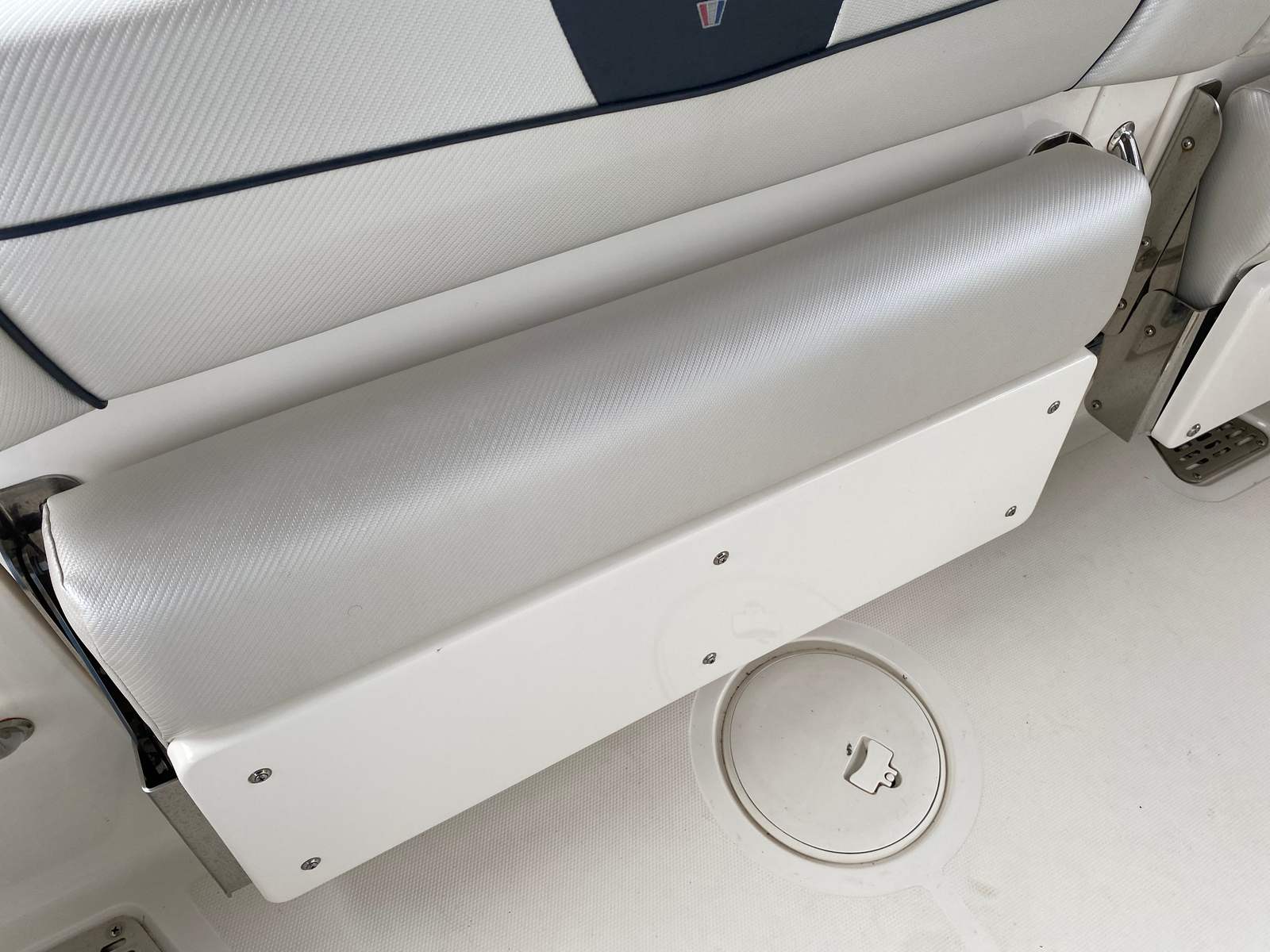 Practicality is at the heart of the Scarab 302 Fisherman’s design. The Center Console layout maximizes deck space, making it easy to store gear and equipment without sacrificing comfort. The twin-engine setup not only boosts performance but also enhances safety and reliability, giving you peace of mind during longer trips. Docking is simplified thanks to the responsive controls and maneuverability provided by the dual engines. Fuel efficiency is optimized for a boat of this size and power, allowing you to spend more time on the water and less time refueling. The Scarab 302 Fisherman is built to handle a variety of conditions, making it a dependable choice for both novice and experienced boaters.