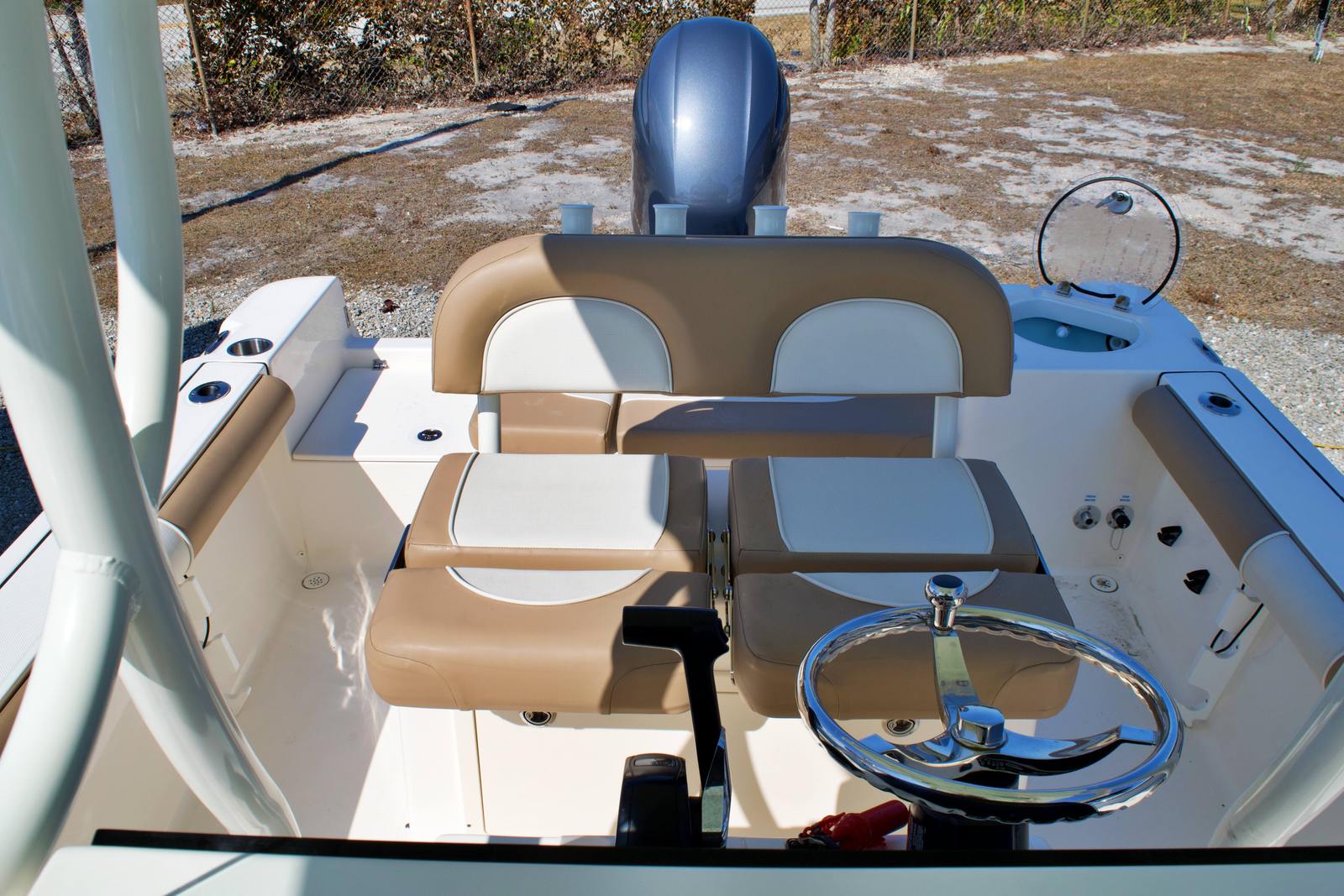 The Sea Born 22 LX is packed with features that enhance both its functionality and enjoyment on the water. As a center console boat, it offers a spacious deck layout that maximizes usable space for fishing, lounging, or entertaining. The helm is ergonomically designed for comfort and control, with easy-to-read gauges and intuitive controls that put everything you need at your fingertips. The open layout provides ample room for movement, making it easy to cast lines, set up gear, or simply relax and take in the scenery.This model is built with quality materials and attention to detail, ensuring durability and longevity. The non-skid deck surface provides safety and confidence underfoot, while the sturdy construction gives peace of mind in a variety of conditions. The Sea Born 22 LX is also designed with storage in mind, offering multiple compartments to keep your gear organized and out of the way. These thoughtful touches make it easy to keep the deck clutter-free and ready for action at a moment’s notice.
