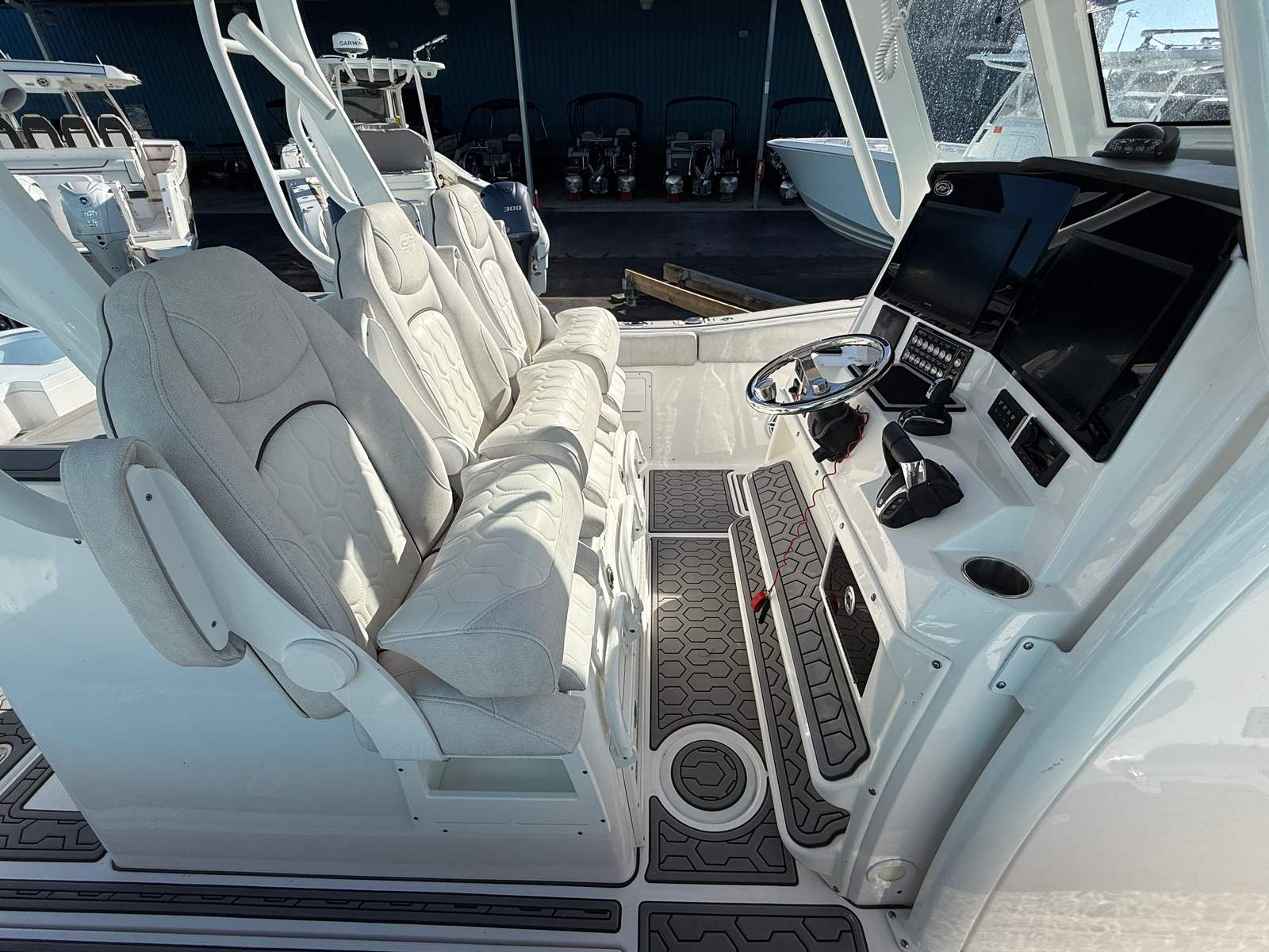 Under the hood, the Sea Fox 328 Commander is powered by twin engines, delivering a combined 850 horsepower. This impressive power setup ensures that you have the speed and agility needed for a variety of activities, from high-speed runs to leisurely cruises. The dual-engine configuration not only enhances performance but also provides added reliability and peace of mind when venturing farther from shore. Whether you are chasing the horizon or navigating tight marinas, the responsive handling and robust acceleration of this center console boat make every outing a memorable experience.
