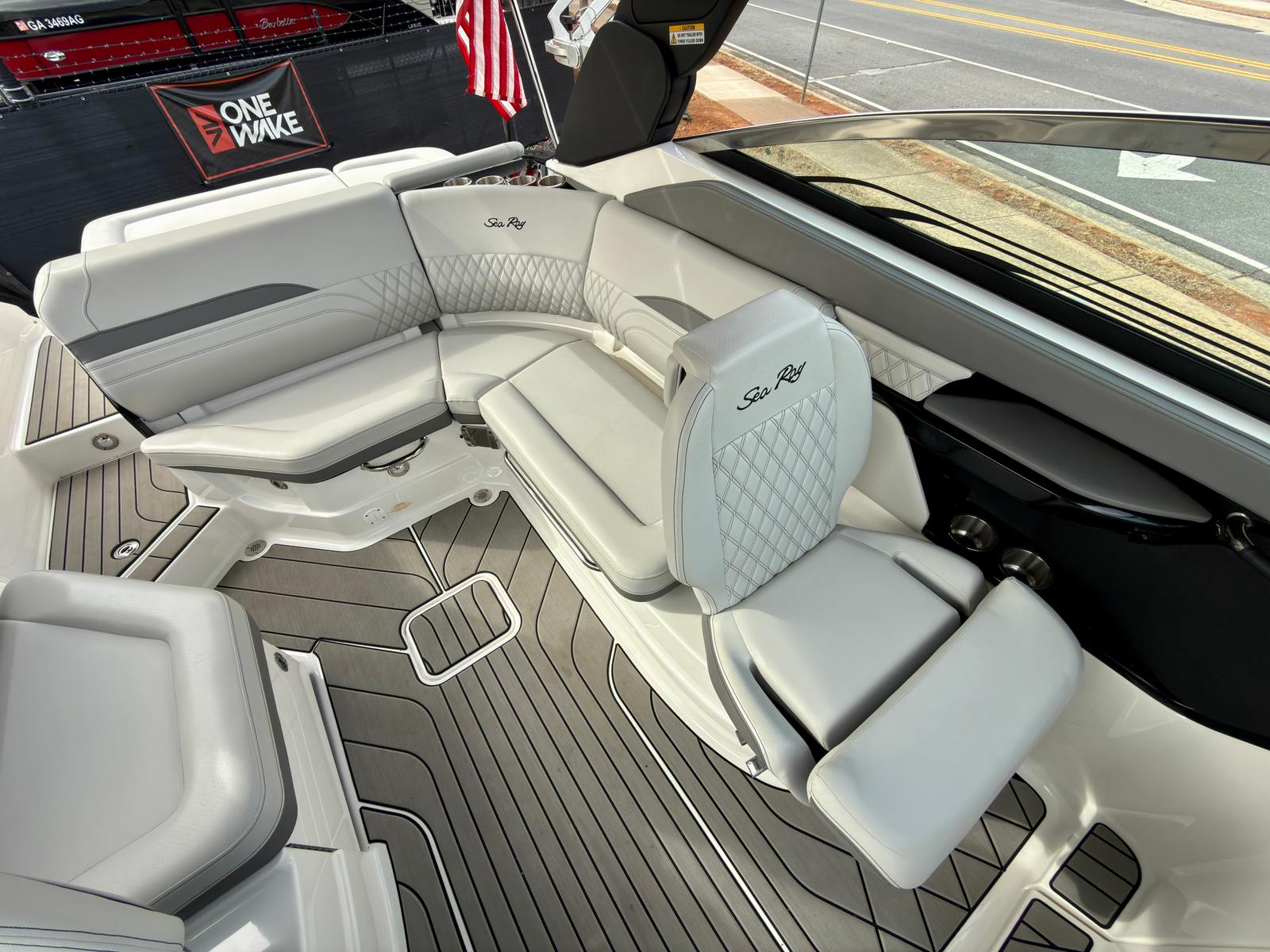 Powered by Sea Ray’s surf-specific propulsion and Smart Surf technology, this boat delivers a clean, customizable wave without sacrificing the ride quality Sea Ray is known for. Deep-V hull, upscale fit and finish, and smart storage throughout.