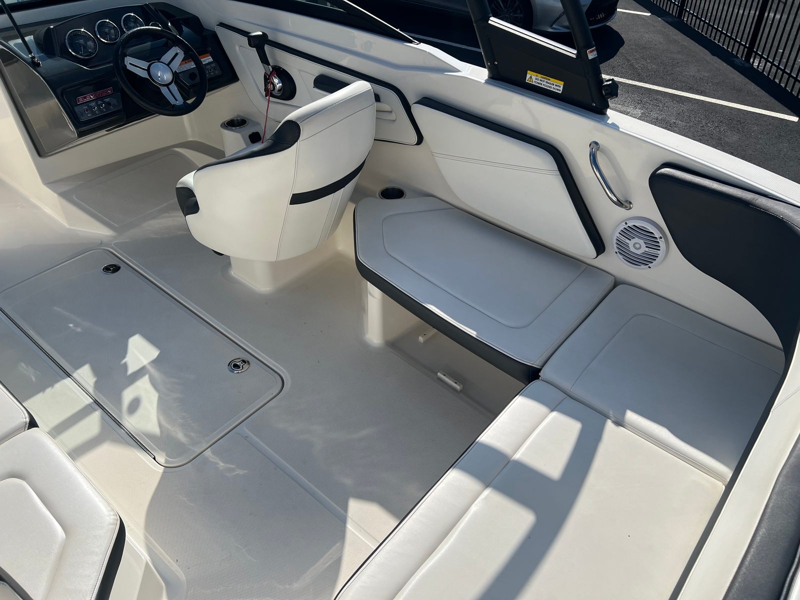 The Sea Ray SPX 21 excels in practicality as well as performance. Its thoughtful storage solutions make it easy to stow life jackets, water toys, and personal items, keeping the deck clutter-free and safe. The boat’s size is ideal for navigating both large lakes and smaller rivers, giving you the flexibility to explore a variety of waterways. Docking is straightforward thanks to the boat’s responsive handling and compact footprint, making it suitable for both experienced boaters and those new to the hobby.Fuel efficiency is another highlight of the SPX 21, ensuring that your adventures are both enjoyable and economical. The single-engine setup simplifies maintenance and reduces operating costs, while still delivering the power needed for a range of activities. Whether you’re planning a day trip or a weekend getaway, this Bowrider boat for sale is equipped to meet your needs with ease.