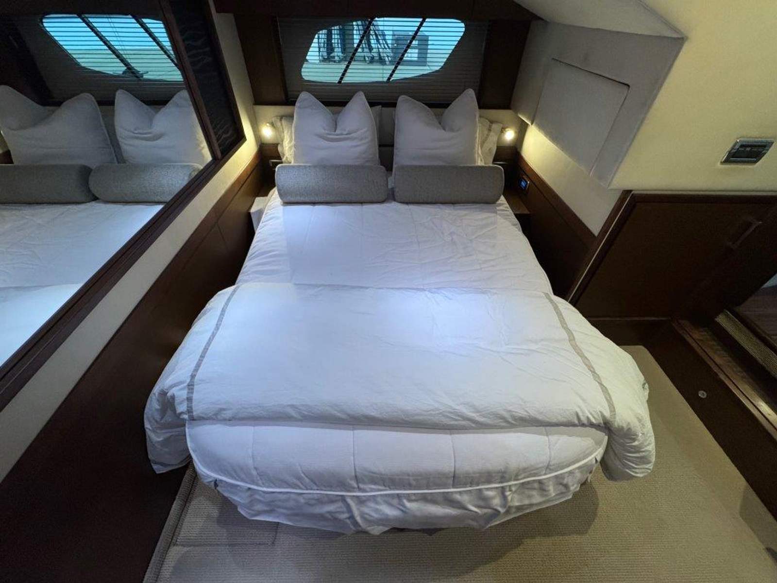 Powered by upgraded Cummins QSM11 Zeus Drives with 940 hours, delivering 715HP, this Sundancer makes cruising smooth and stress-free with joystick control and Skyhook positioning. The 21.5kW Onan generator (1,480 hours) runs quietly and reliably, keeping everything powered while underway or at anchor. All service records are available to qualified buyers.