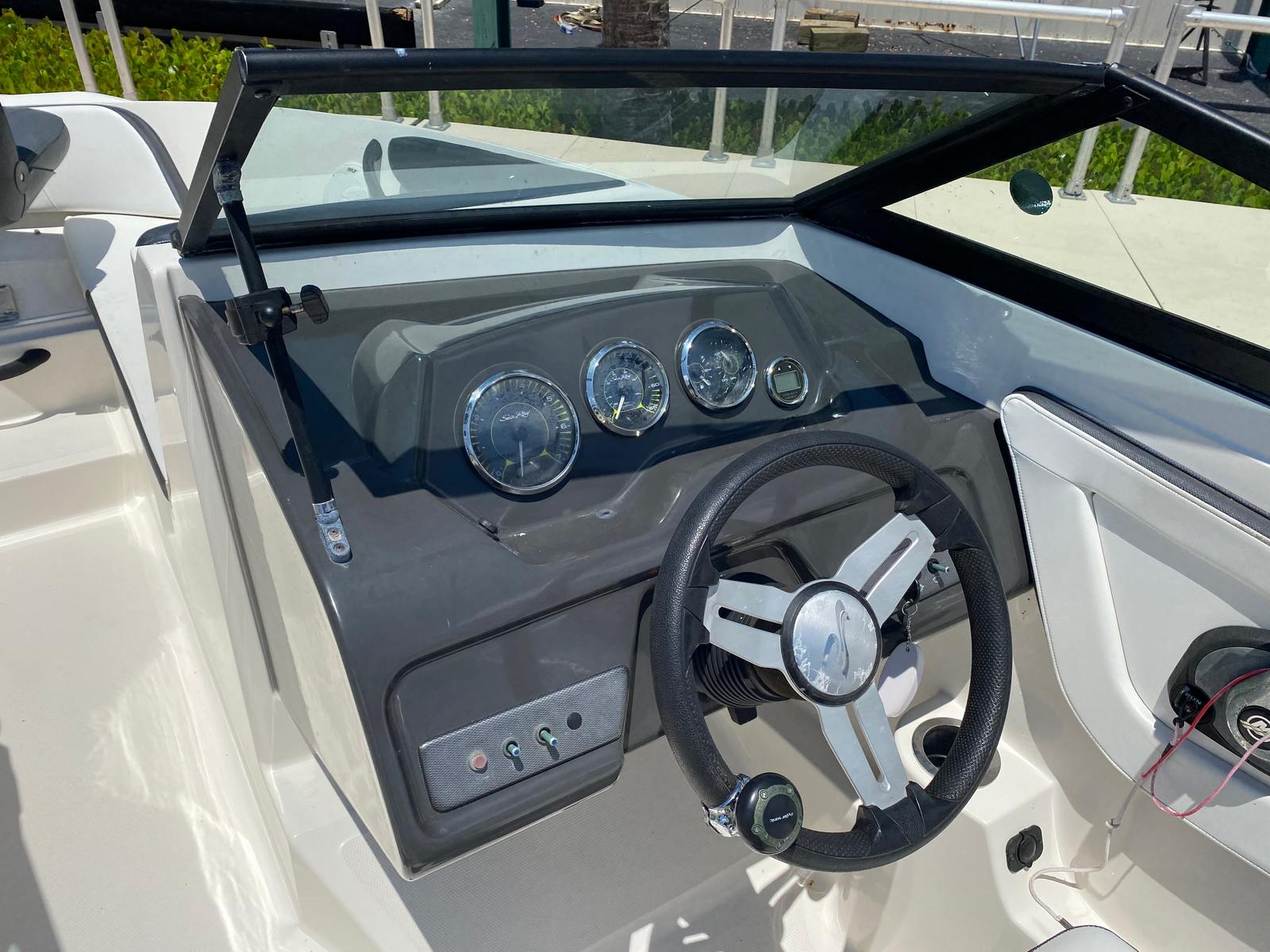 The Sea Ray SVX 19 comes equipped with features designed to enhance your boating experience. As a Bowrider, it offers an open and inviting layout, perfect for socializing and soaking up the sun. The spacious bow seating area provides plenty of room for guests to relax, while the ergonomic helm ensures comfortable control for the captain. The 19-foot length allows for ample deck space without sacrificing agility, making it easy to navigate tight marinas and busy waterways.This used Sea Ray boat for sale is built with quality materials and craftsmanship, ensuring durability and longevity. The thoughtful design includes convenient storage compartments for your gear, life jackets, and water toys, helping you keep the deck clutter-free and organized. The SVX 19’s sleek exterior and modern finishes make it a standout on the water, while its practical layout ensures everyone on board enjoys maximum comfort.
