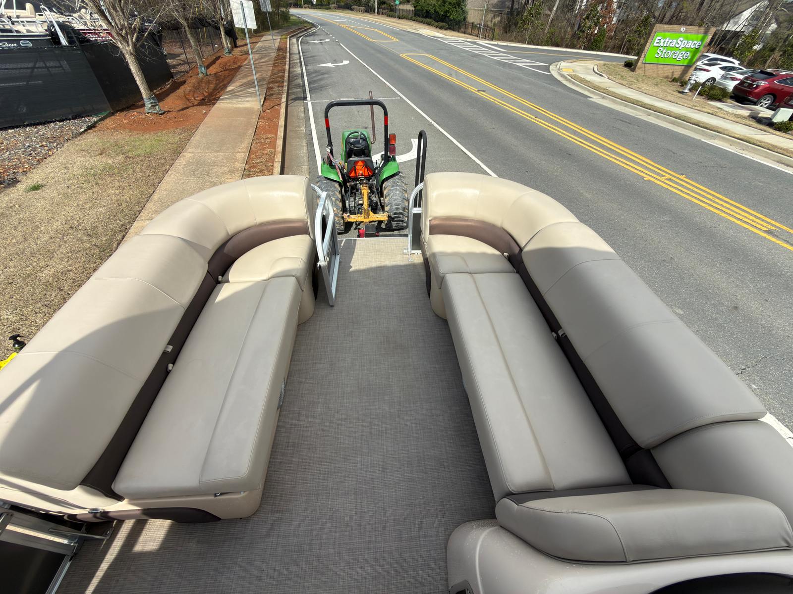 The Sun Tracker Party Barge 20 DLX is designed with comfort and convenience in mind. Its nearly 22-foot length offers ample deck space, allowing you and your guests to move freely and enjoy every moment on board. The open layout is perfect for socializing, with plenty of seating for family and friends. The pontoon’s sturdy construction and thoughtful design ensure a stable, safe ride, even when the water gets a little choppy.Special features of the Party Barge 20 DLX include plush, comfortable seating that invites you to relax and unwind, as well as a spacious deck that is ideal for entertaining. The pontoon’s layout is optimized for both relaxation and activity, making it easy to switch from sunbathing to fishing or from a quiet cruise to a lively party. The durable flooring is easy to clean and maintain, ensuring your boat looks great season after season.