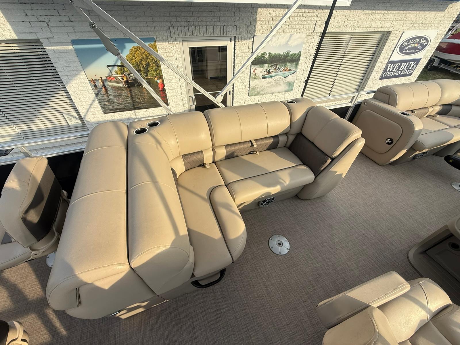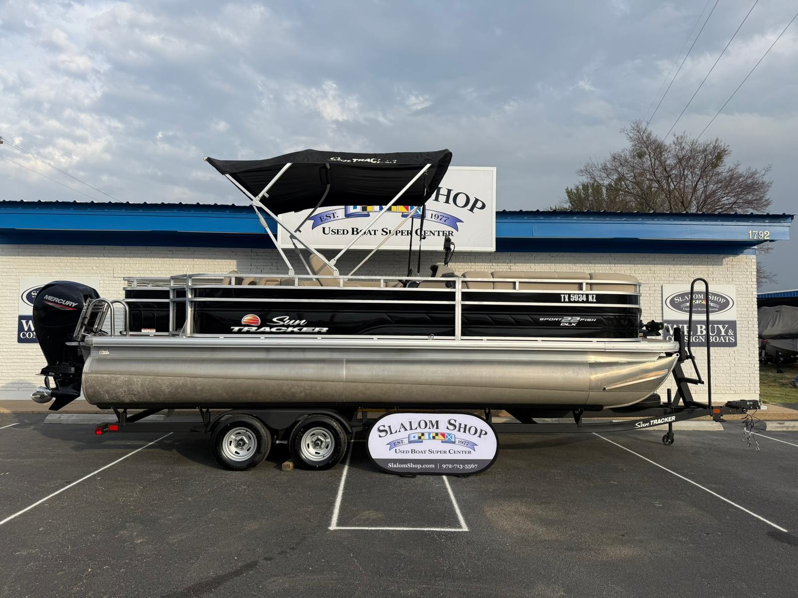 The 2025 Sun Tracker Sport Fish 22 is a 24-foot pontoon boat that exemplifies the best in modern recreational boating. As a used pontoon boat for sale, it offers the advantage of a nearly-new vessel with minimal hours, ensuring you get outstanding value and longevity. The Sport Fish 22 model is renowned for its spacious deck layout, making it perfect for families, groups of friends, or anyone who loves to entertain on the water. Its sleek lines and contemporary styling ensure you’ll turn heads at every dock and marina.