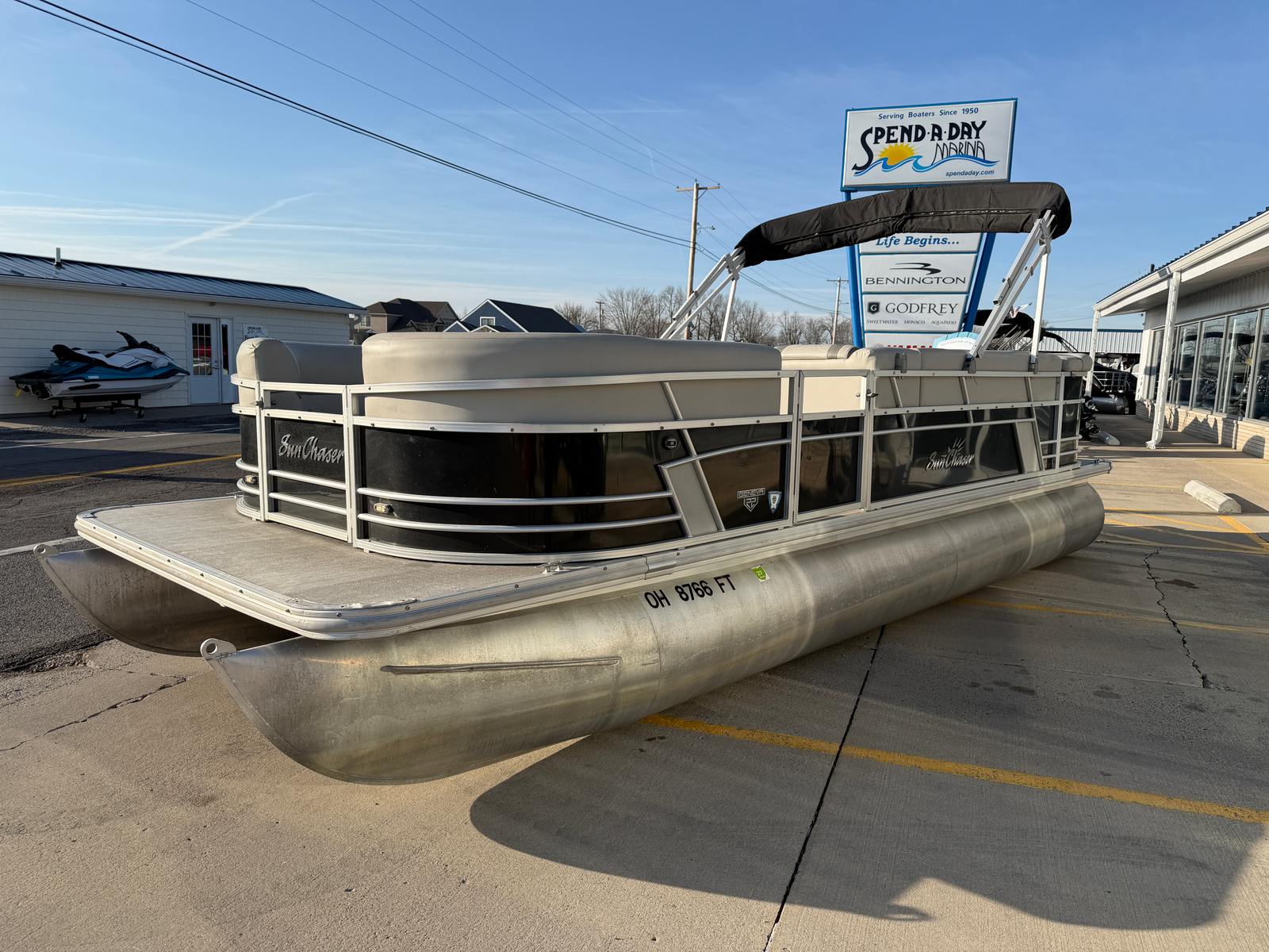 The 2018 Sunchaser Geneva 22 is a 22-foot pontoon boat that exemplifies the brand’s commitment to quality and innovation. Known for their durability and user-friendly layouts, Sunchaser boats are a favorite among boating enthusiasts who value both relaxation and recreation. This particular model, with its generous length and well-thought-out design, offers ample space for passengers to stretch out and enjoy the ride. As a used pontoon boat, the Geneva 22 provides excellent value, allowing you to enjoy premium features and a trusted name without the new-boat price tag.