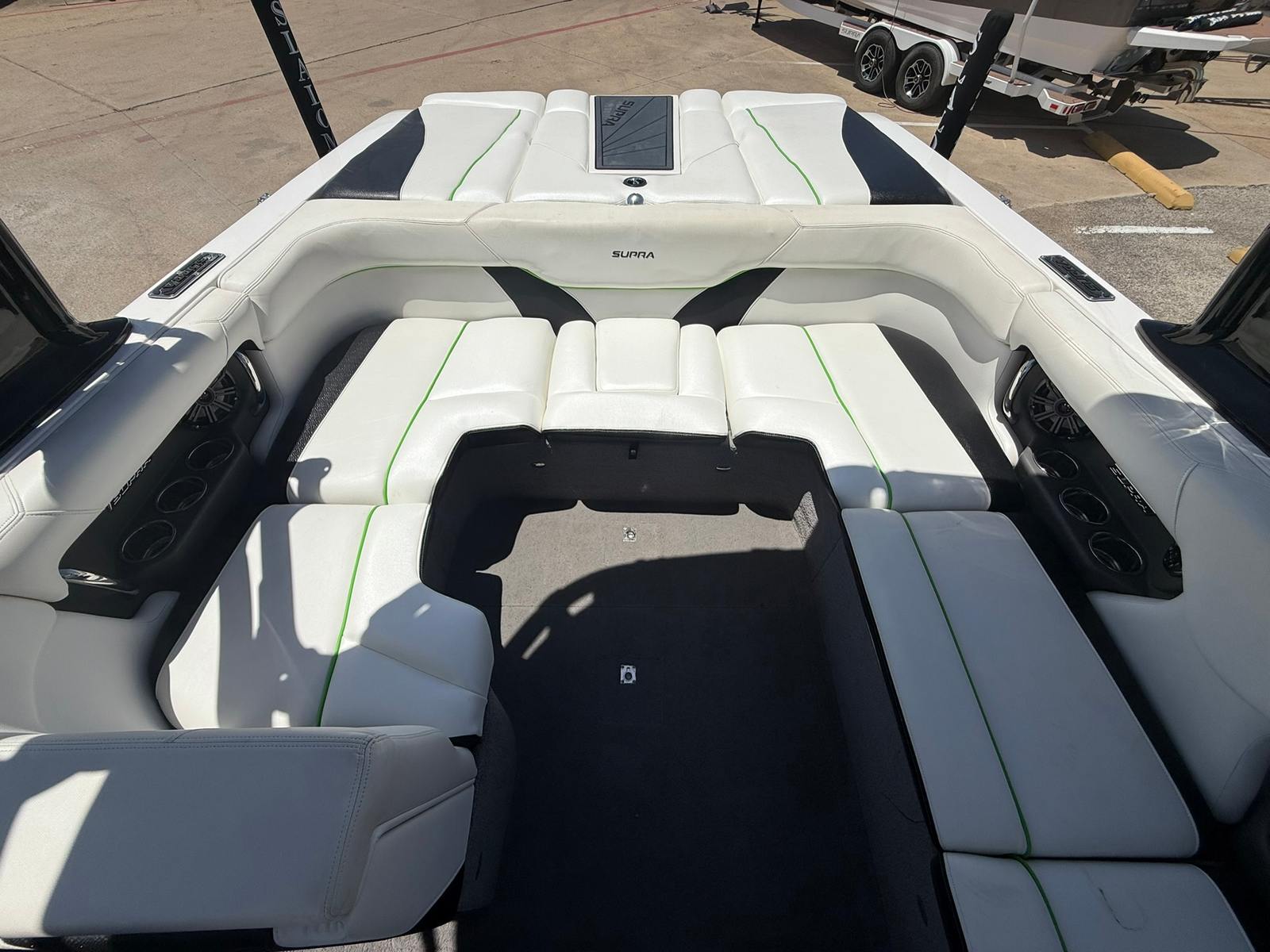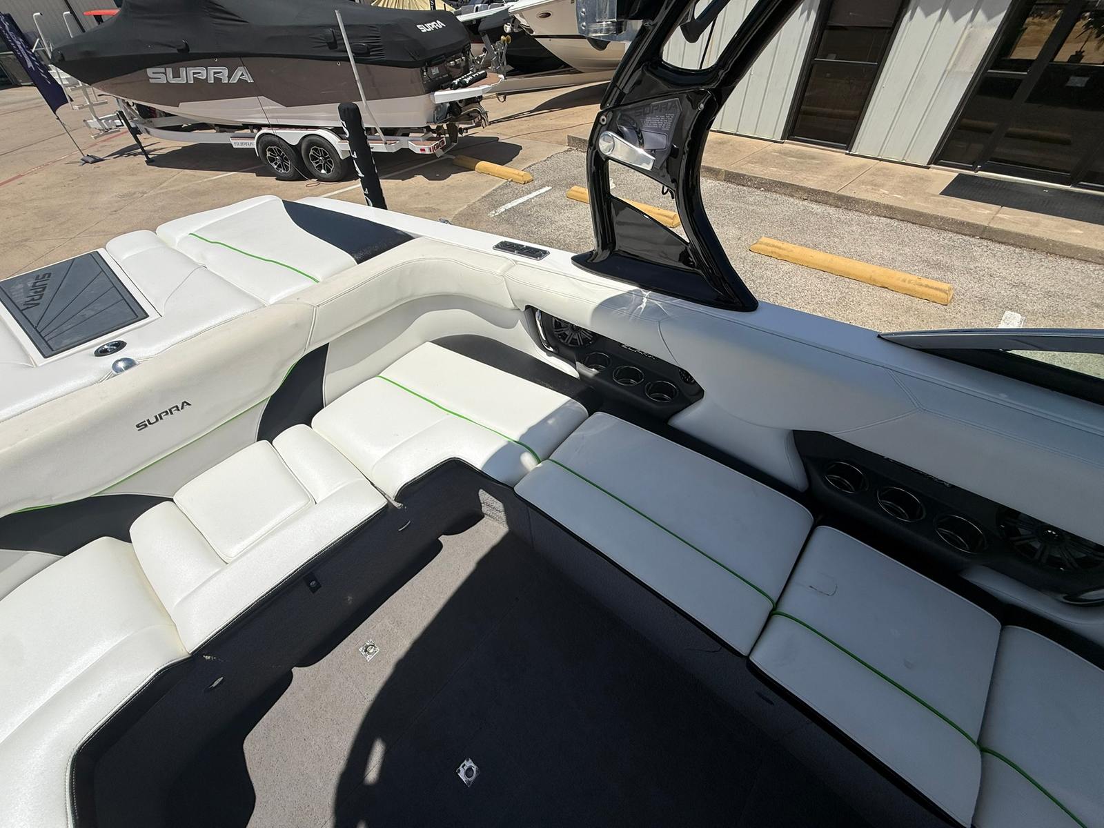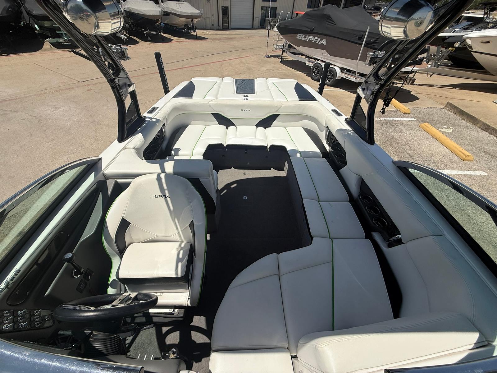 The Supra 22 SSV is engineered with water sports in mind, offering a range of features that enhance your time on the water. The spacious interior layout is designed for comfort and convenience, providing plenty of seating for your crew. The boat’s design maximizes usable space, making it easy to move around and store your gear. The hull is crafted for optimal wake creation, ensuring that skiers and wakeboarders can enjoy clean, consistent wakes every time. The intuitive helm puts all controls within easy reach, allowing the captain to focus on the fun. With its 23-foot length, the Supra 22 SSV strikes the perfect balance between maneuverability and roominess, making it ideal for both action-packed days and relaxing cruises.