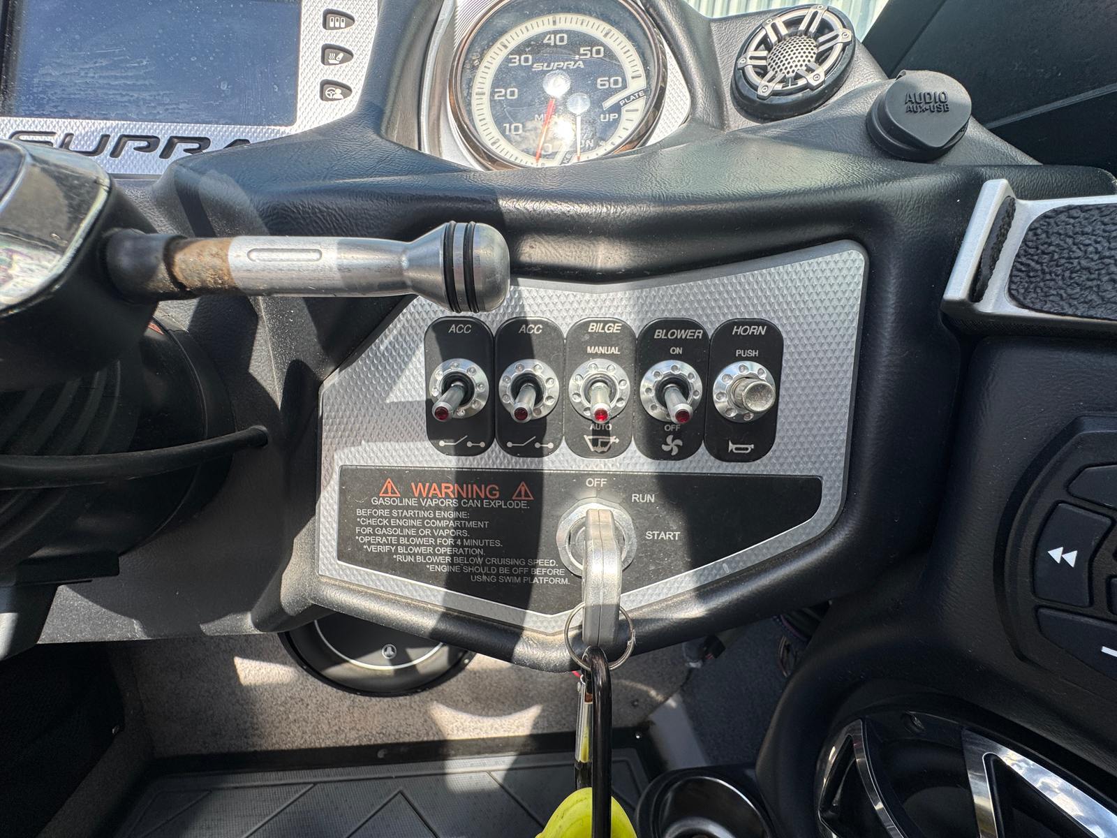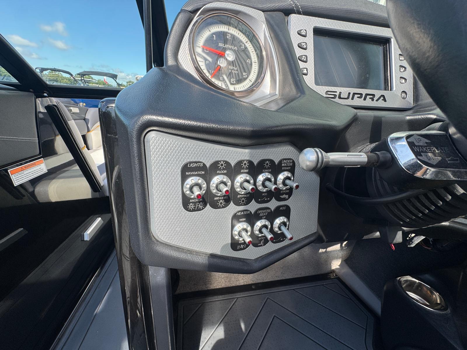 The 2017 Supra SE 550 stands out as a top-tier Ski & Wakeboard boat, boasting a commanding presence with its 24.5-foot length. Its sleek, modern design is matched by robust construction, ensuring both durability and eye-catching appeal. With only 325 engine hours, this used Supra boat for sale has been well cared for, offering you many more seasons of fun and excitement. Whether you are a seasoned wakeboarder, a family looking for weekend thrills, or someone who appreciates the finer things in boating, the Supra SE 550 is designed to impress.