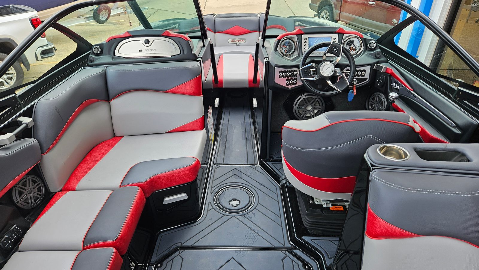 At the heart of the Supra SE 550 is a formidable 550-horsepower engine, engineered to deliver exhilarating acceleration and top-tier towing capabilities. Whether you’re carving through glassy waters or launching off massive wakes, this Ski & Wakeboard boat responds with precision and power. The advanced engine setup ensures smooth rides, quick planing, and consistent performance, making it ideal for wakeboarding, waterskiing, and surfing. With this much horsepower at your fingertips, you’ll have all the muscle you need to create the perfect wake and keep the excitement going all day long.