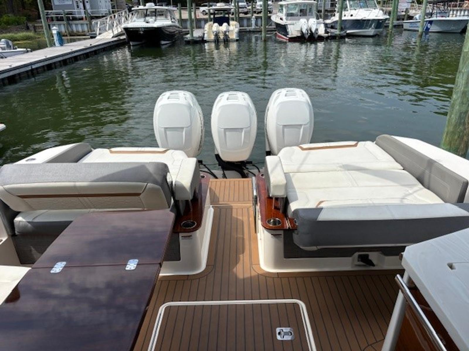 Power and precision define the performance of the Tiara Yachts 38 LX. Equipped with three robust engines, this yacht boasts a combined 1200 horsepower, delivering impressive speed and agility on the water. With only 250 engine hours, these engines are in excellent condition, promising many more adventures ahead. The triple-engine configuration not only enhances acceleration and top-end speed but also provides superior handling and maneuverability, making docking and navigating tight spaces a breeze. Whether you are cruising along the coastline or heading out for a day of offshore excitement, the Tiara Yachts 38 LX offers a thrilling and reliable ride.
