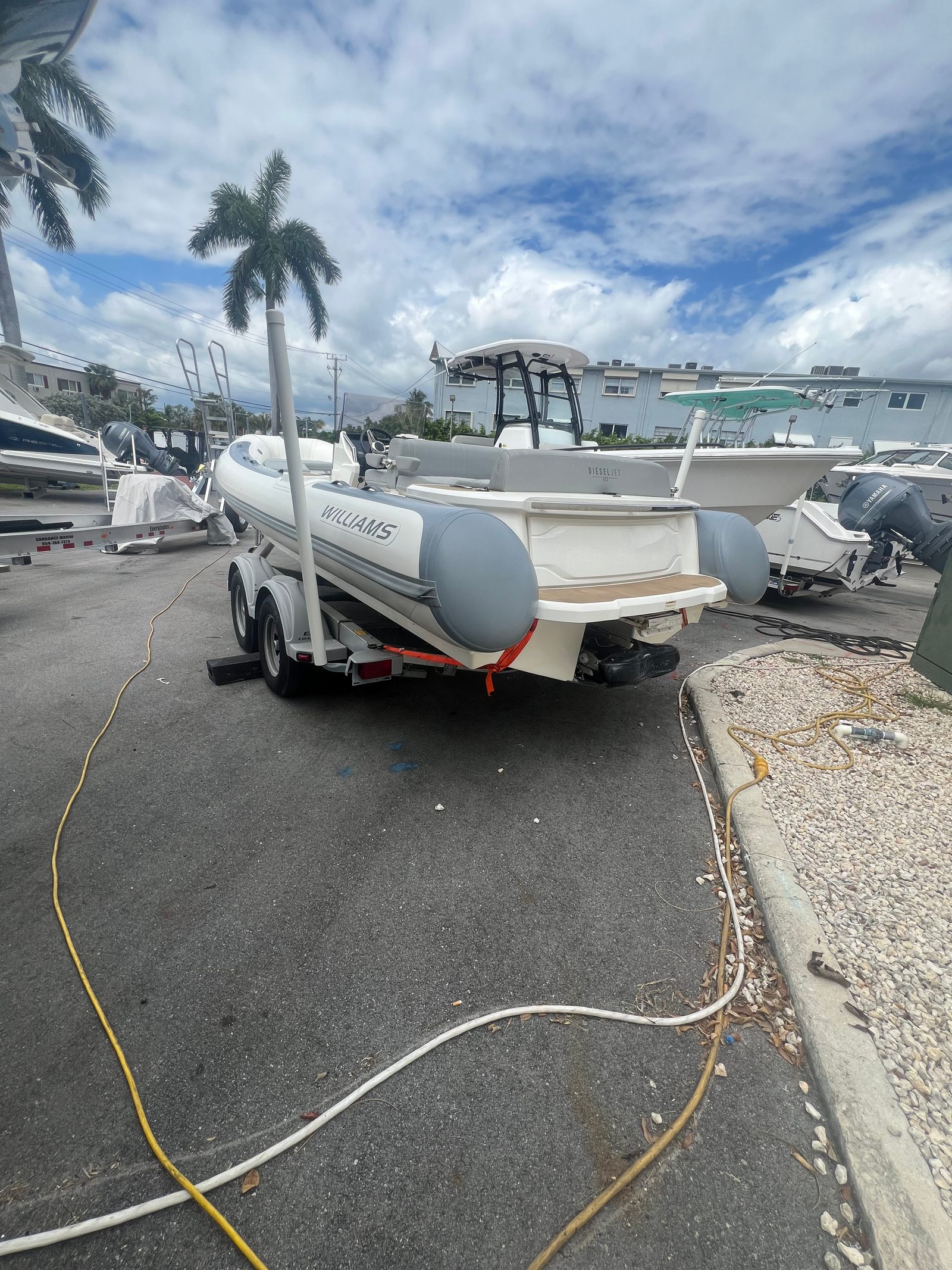 This Williams boat for sale is as practical as it is enjoyable. The generous storage compartments provide plenty of space for your gear, water toys, and personal belongings, keeping the deck clutter-free and organized. The efficient hull design contributes to excellent fuel economy, allowing you to extend your adventures without worrying about frequent refueling stops. The compact yet spacious layout makes docking and trailering straightforward, so you can easily transport and store your jet boat when not in use.The Williams Dieseljet 625 is also an excellent choice for those who value versatility. Its robust construction and reliable performance make it suitable for a wide range of activities, from leisurely cruises to more adventurous outings. The jet propulsion system offers superior maneuverability, making it easy to navigate through crowded marinas or explore hidden coves and inlets.