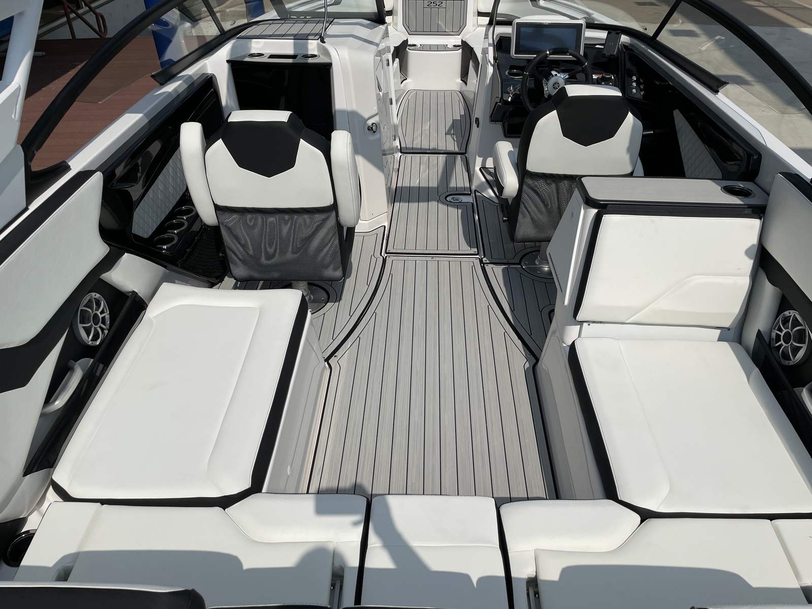- **Twin Engines**: Dual 400 horsepower engines provide superior power and redundancy, ensuring reliable performance even in demanding conditions. - **Advanced Jet Drive**: The state-of-the-art jet drive system offers smooth and efficient propulsion, reducing maintenance needs and enhancing fuel efficiency. - **Spacious Deck Layout**: Ample open space allows for easy movement and accommodates a variety of water sports and activities. - **Comfortable Seating**: Ergonomically designed seats offer maximum comfort for extended outings, making every trip enjoyable. - **Innovative Control Systems**: Cutting-edge navigation and control technologies provide precise handling and enhanced safety features. - **Sleek Aesthetic Design**: Modern lines and stylish finishes give the Yamaha 252 S a sophisticated and eye-catching appearance on the water.