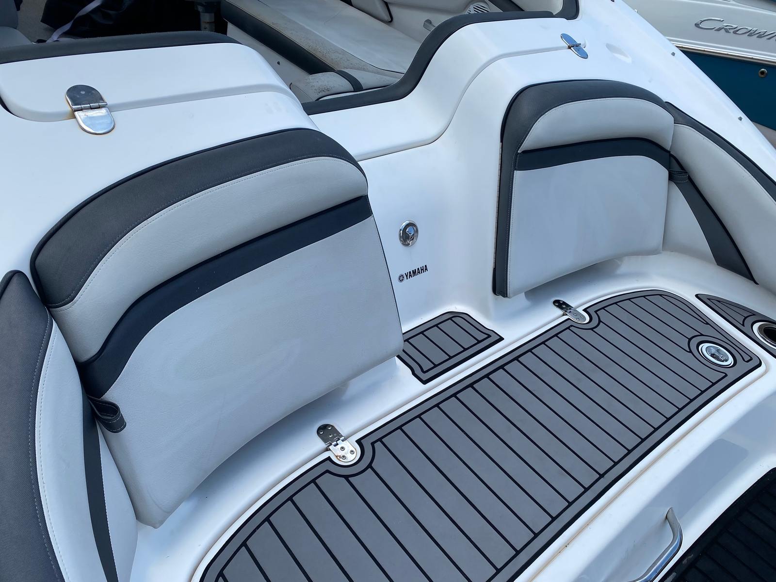 At the heart of the Yamaha AR240 are two robust engines, delivering a combined 360 horsepower. With only 250 engine hours, these engines promise plenty of adventures ahead. The twin-engine setup ensures rapid acceleration, responsive handling, and the thrilling speed that jet boat enthusiasts crave. Yamaha’s advanced jet propulsion system provides a smooth, quiet ride and exceptional maneuverability, making docking and navigating tight spaces a breeze. Whether you are towing water skiers, cruising at high speeds, or simply enjoying a leisurely ride, the AR240’s performance capabilities are sure to impress.